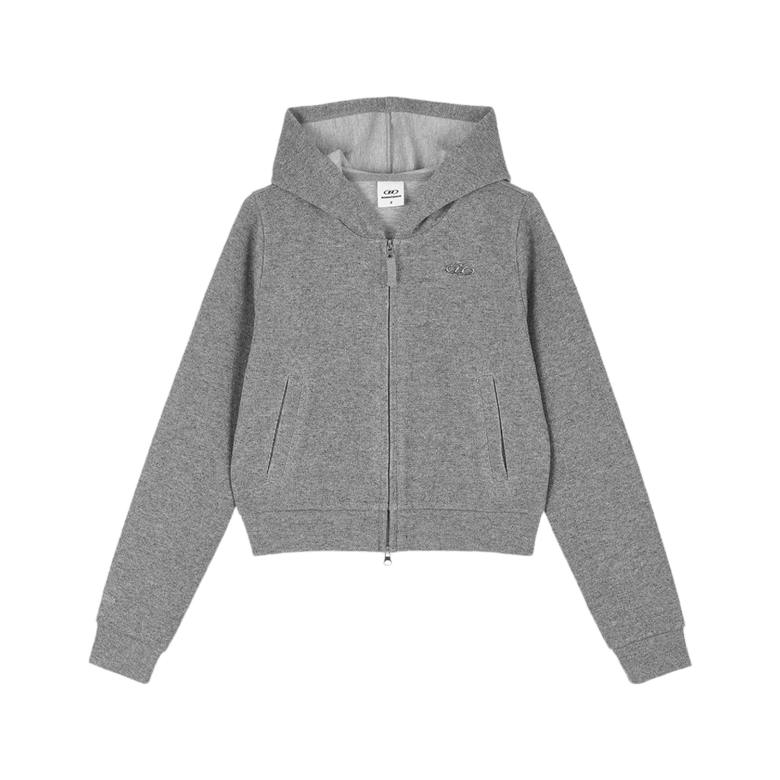본투윈 W 니트 라이크 세미 크롭 후디 집업 멜란지그레이