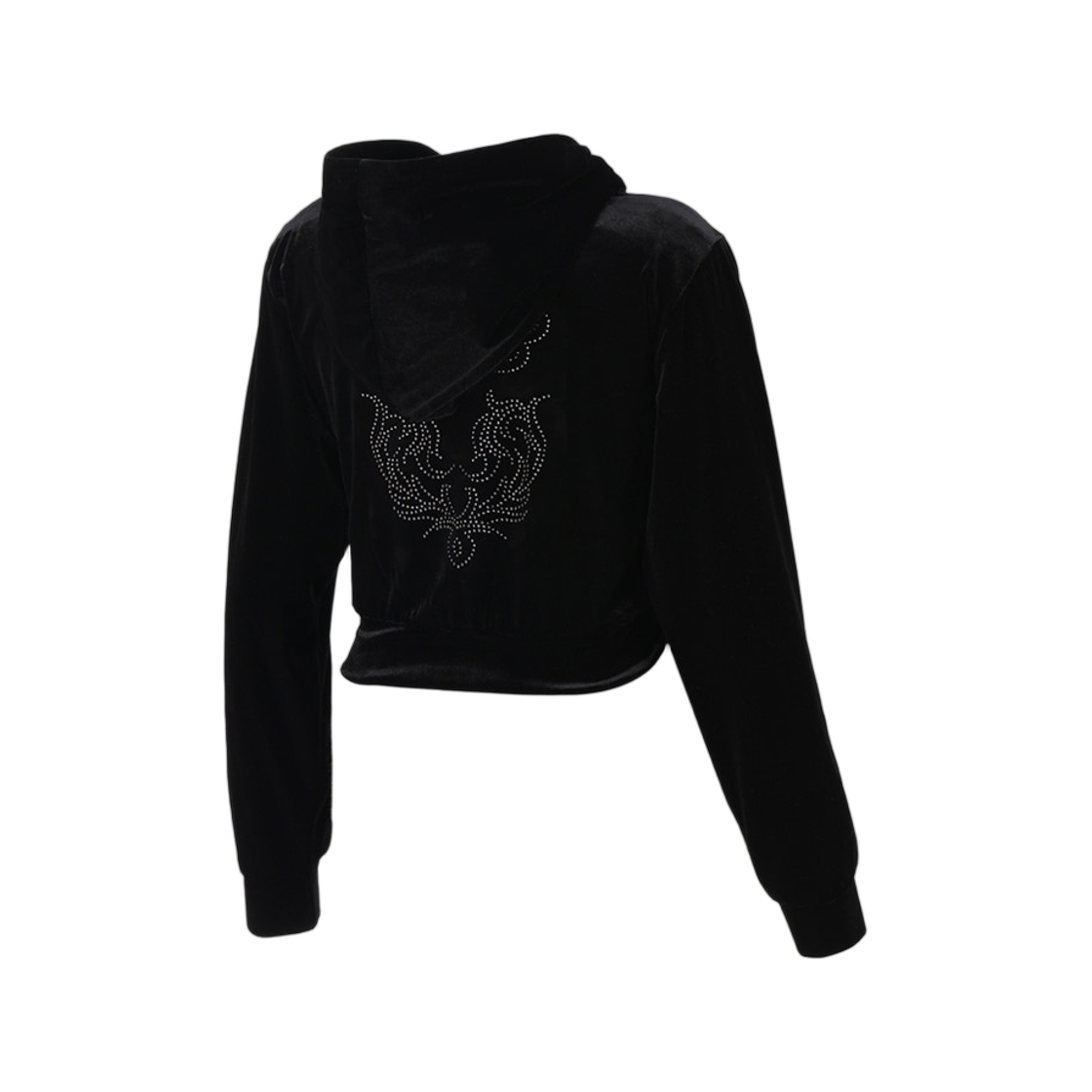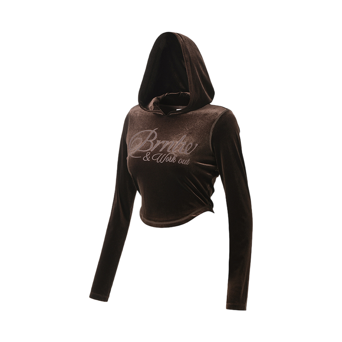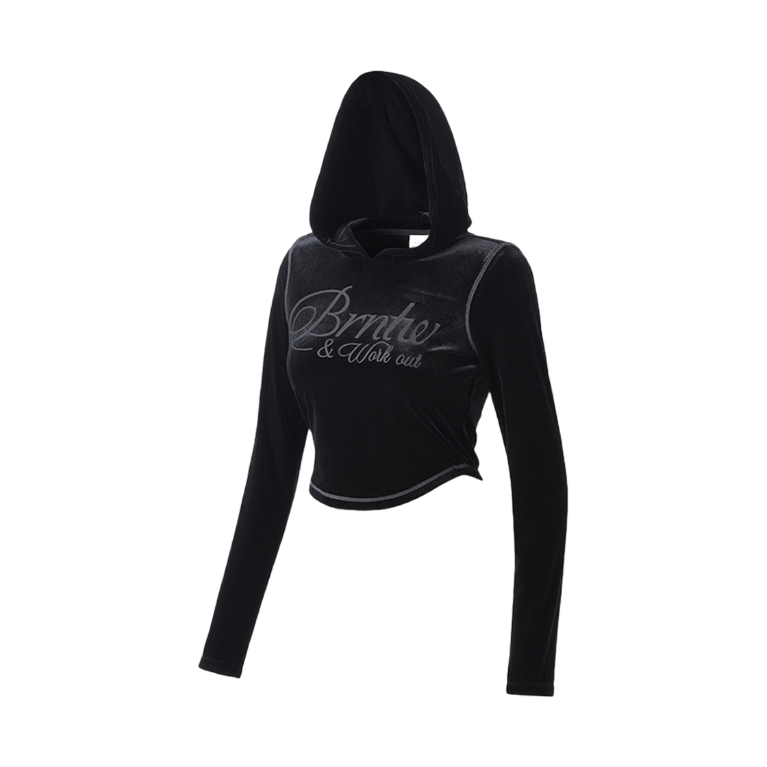 본투윈 우먼 더블 B 벨벳 크롭 후디 집업 블랙