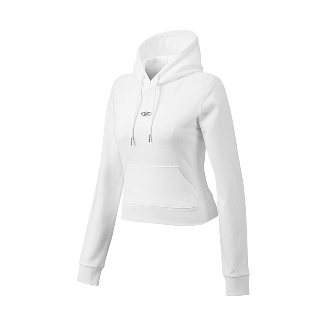 본투윈 우먼스 B 펜던트 코튼 크롭 후디 화이트