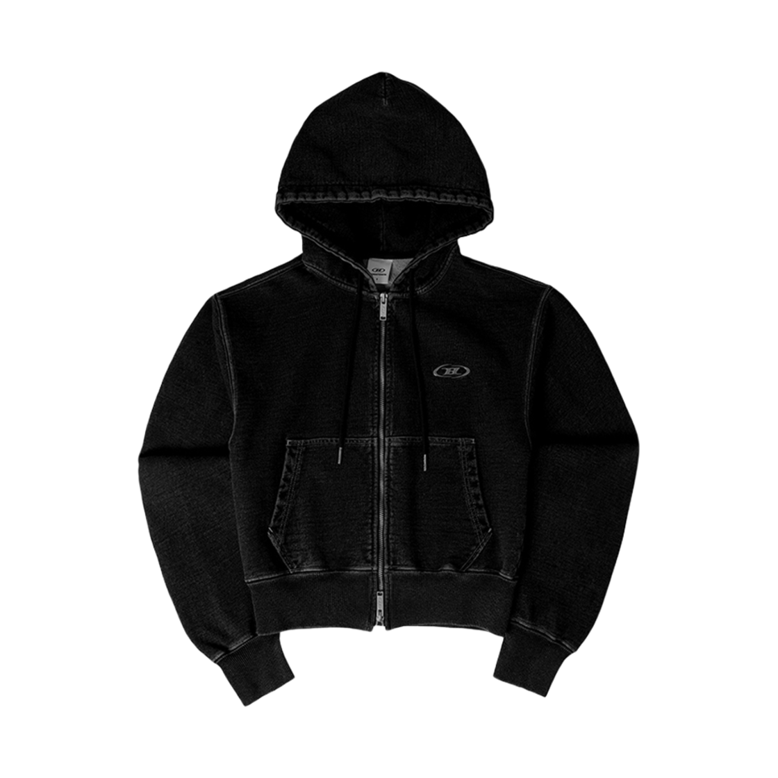 본투윈 볼드 라인 심볼 B 후드 집업 워시드 블랙