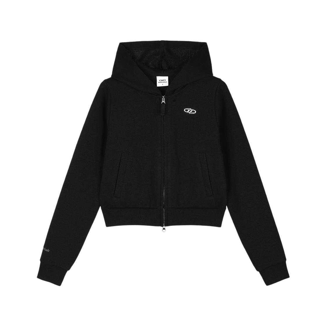 본투윈 W 니트 라이크 세미 크롭 후디 집업 블랙