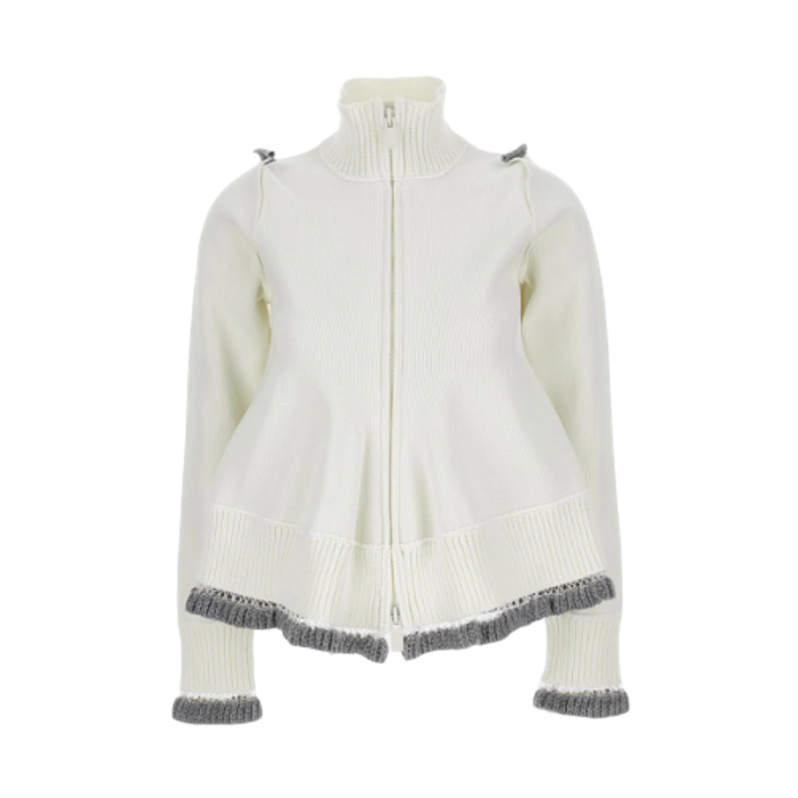 (W) 사카이 나일론 트윌 니트 가디건 다크 카키 네이비