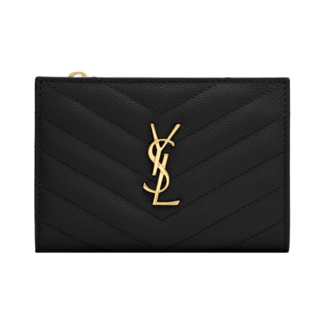 생로랑 그랑 드 뿌드르 엠보스드 레더 카산드라 마틀라세 프라그먼트 지퍼 반지갑 블랙