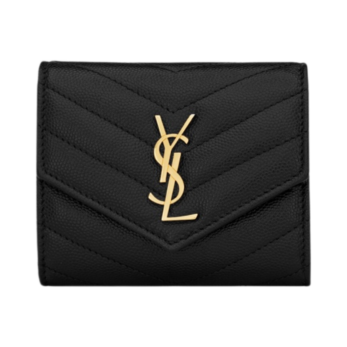 생로랑 그랑 드 뿌드르 엠보스드 레더 카산드라 마틀라세 컴팩트 트라이폴드 지갑 블랙