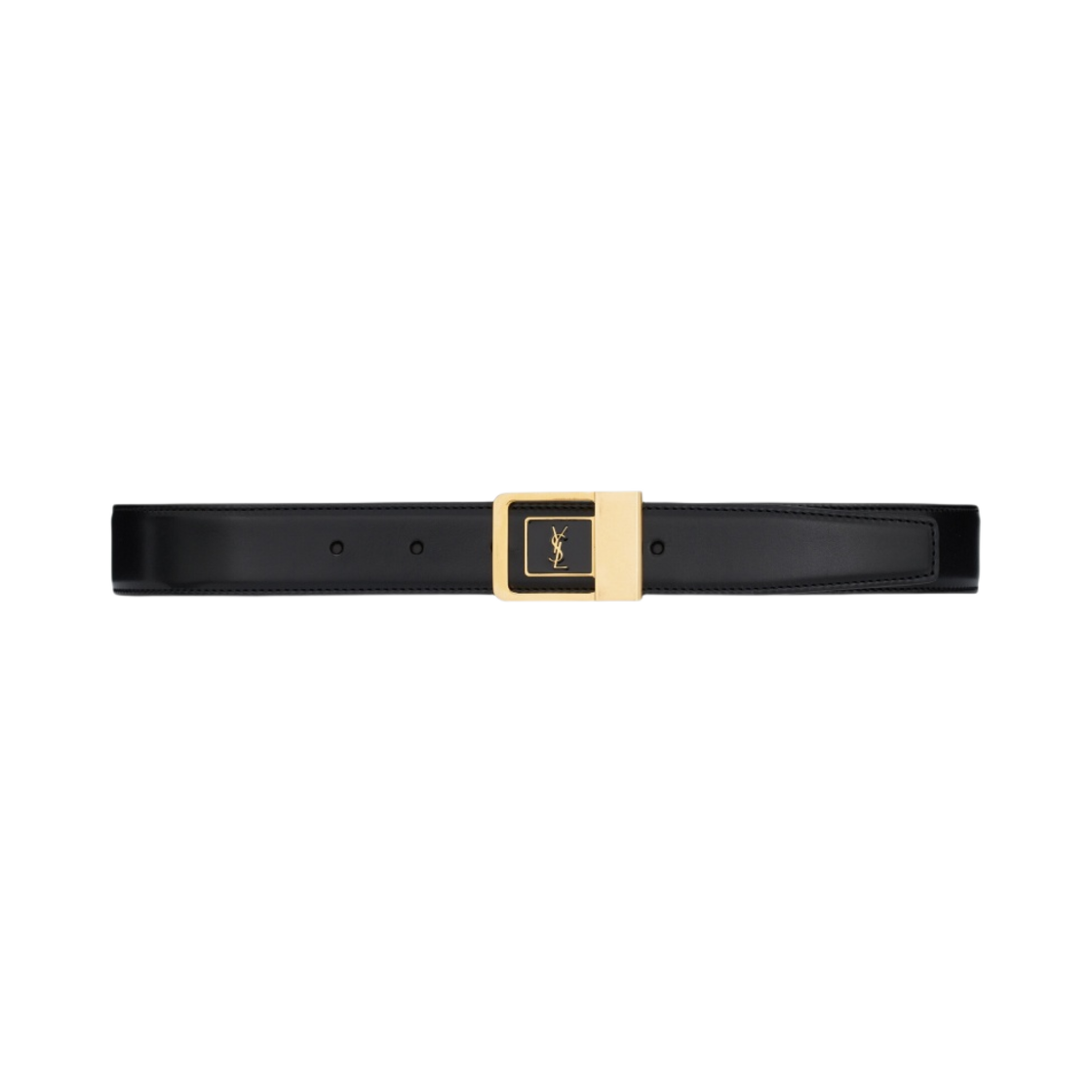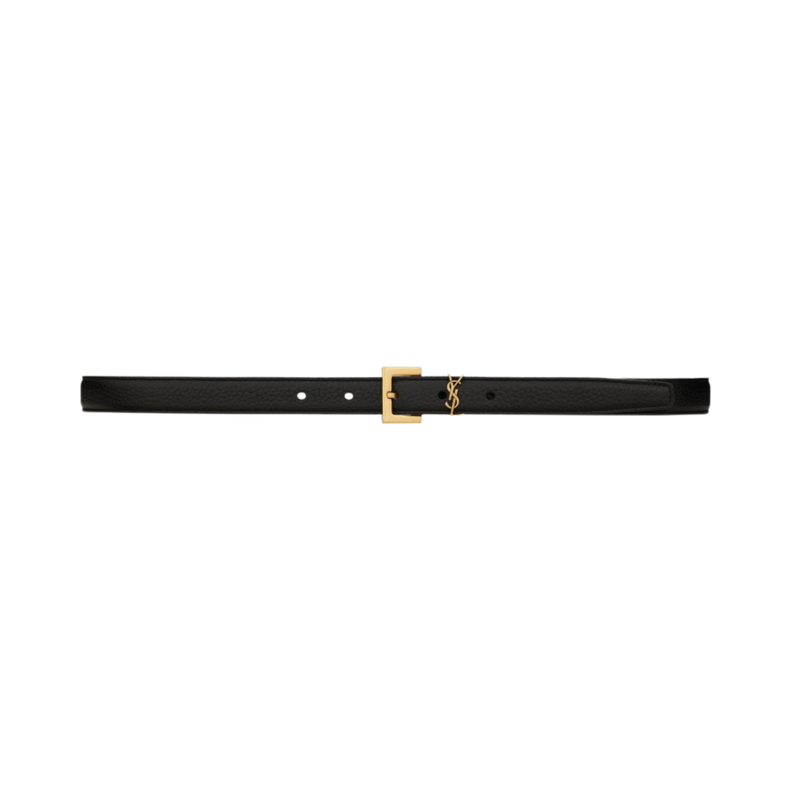 생로랑 카산드라 그레인 레더 스퀘어 버클 씬 벨트 블랙