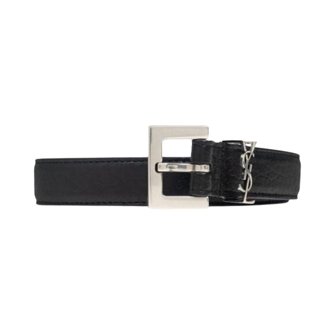 생로랑 그레인드 레더 실버 모노그램 슬림 벨트 블랙
