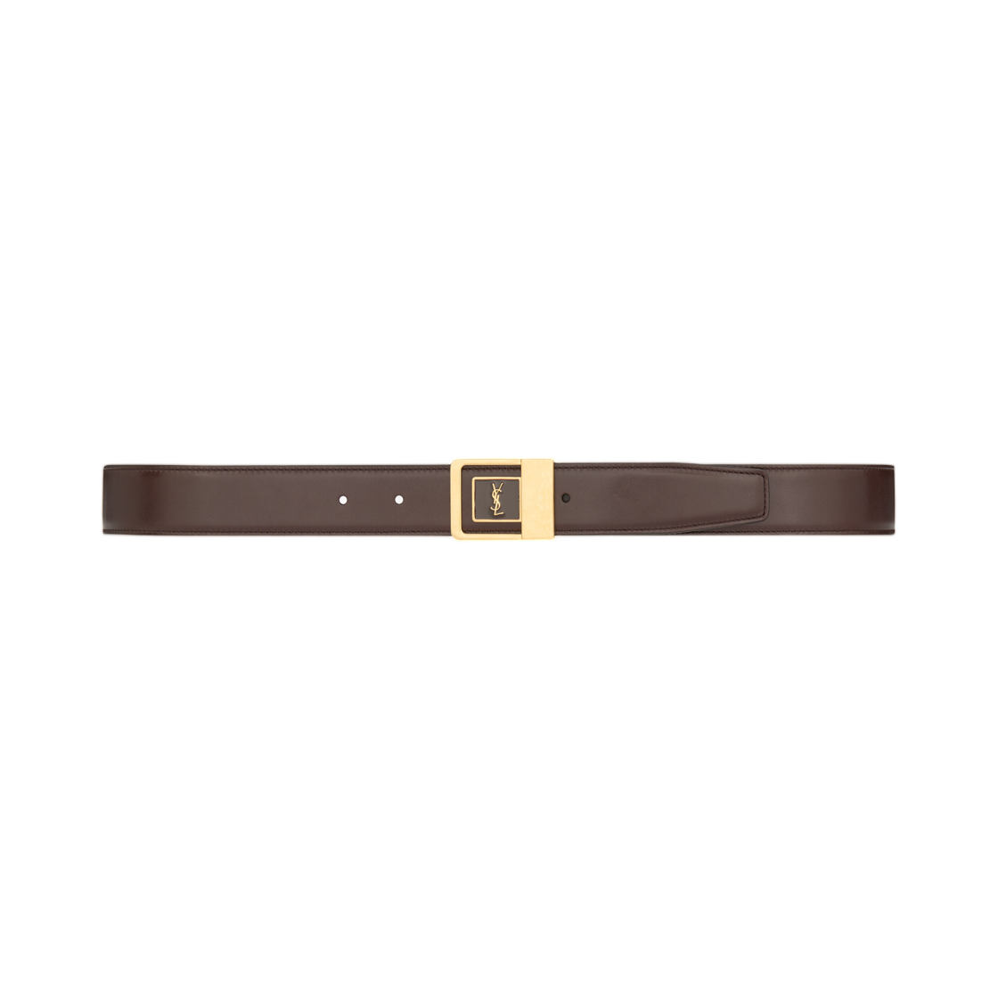 생로랑 렉탱귤러 버클 벨트 레더 번트 초콜릿