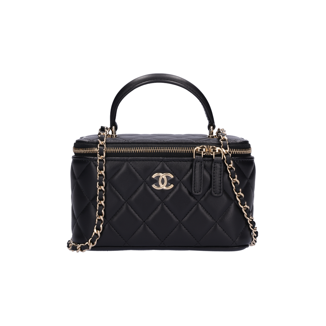 샤넬 AP2550 금장 CC 멀티 체인 숄더 스트랩 블랙 램스킨 베니티 코스메틱 백 aa52004