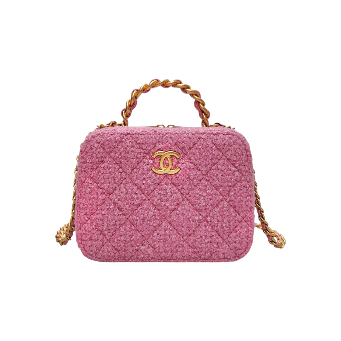 샤넬 AS3318 핑크 트위드 체인 베니티 코스메틱 스몰 탑핸들백