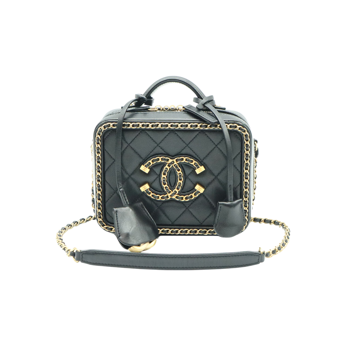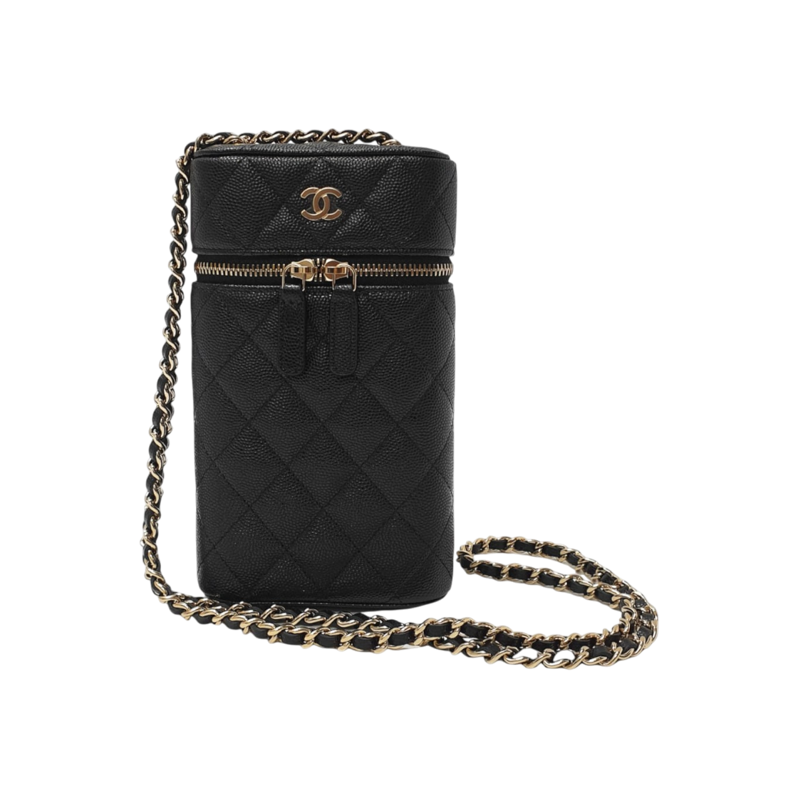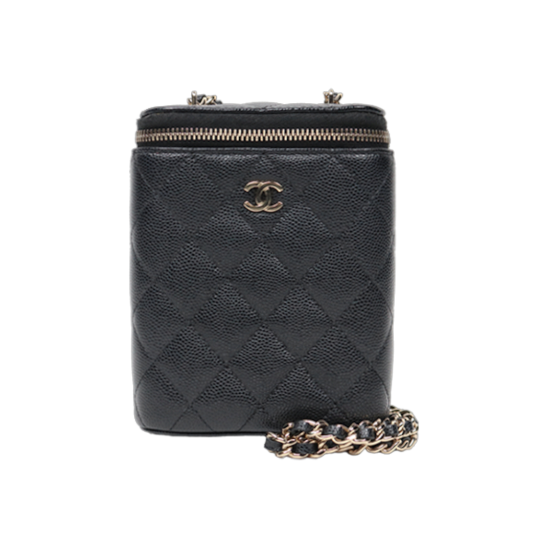 [A등급] 샤넬 AP1341 클래식 스몰 베니티 체인 코스메틱 케이스 그레인드 카프스킨 블랙 금장
