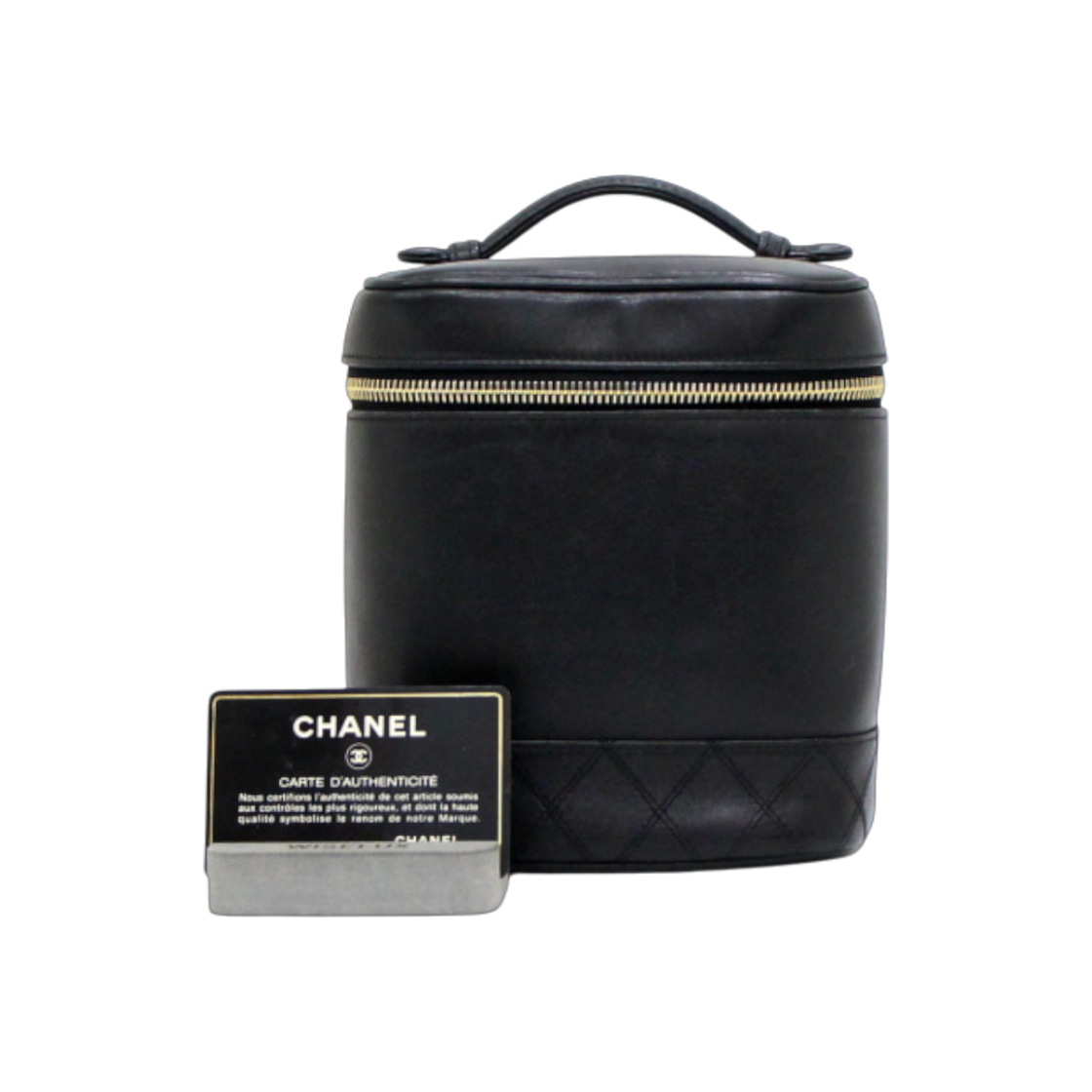샤넬 베니티 코스메틱 케이스 램스킨 금장
