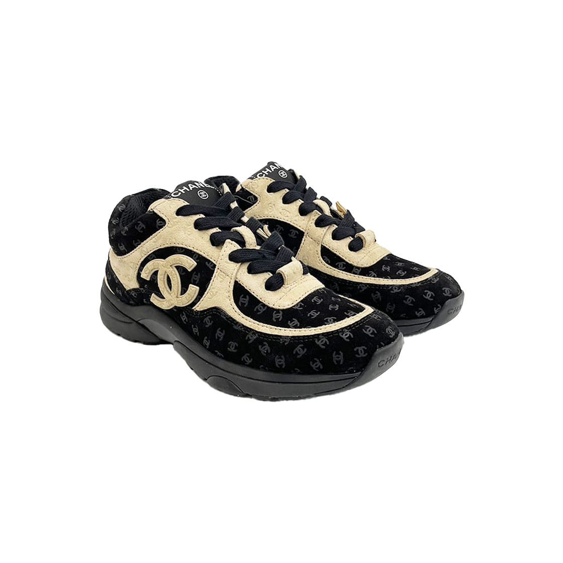 샤넬 22A CC프린티드 스니커즈 35 블랙/베이지