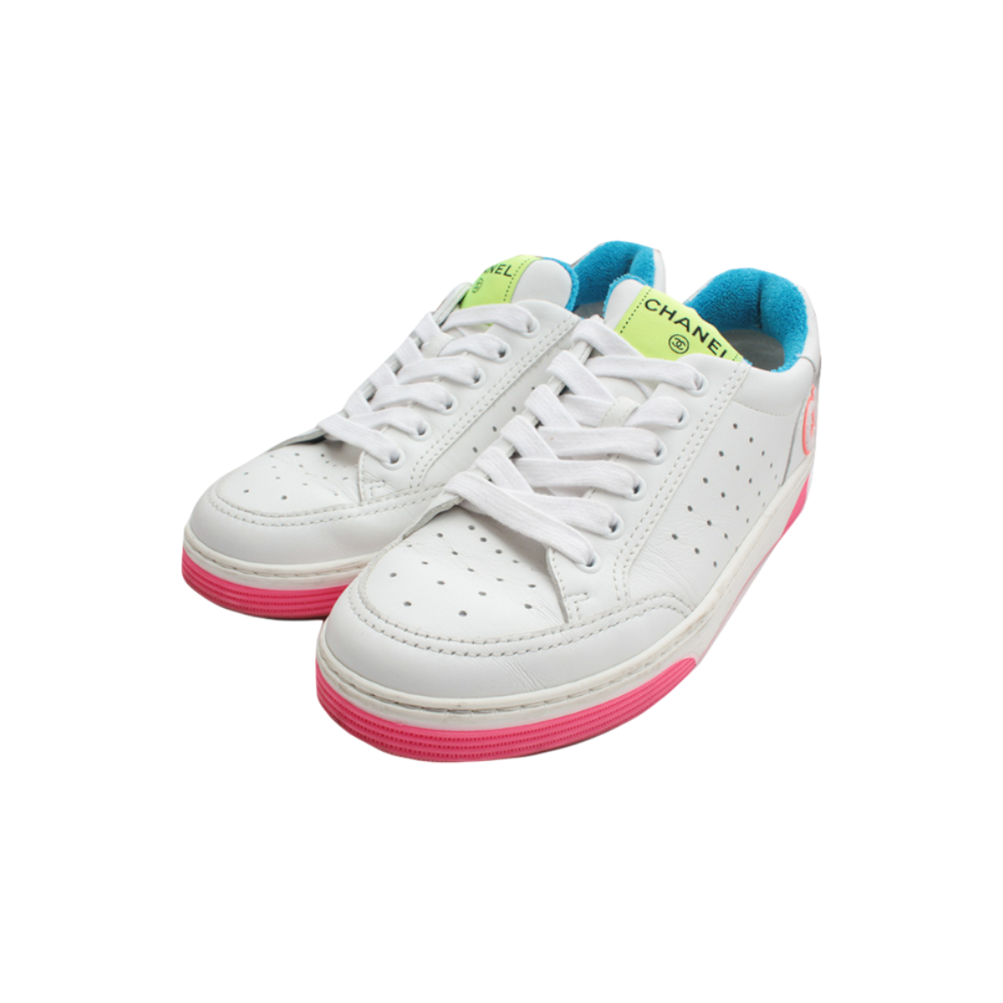 샤넬 화이트 네온 스니커즈 37 사이즈