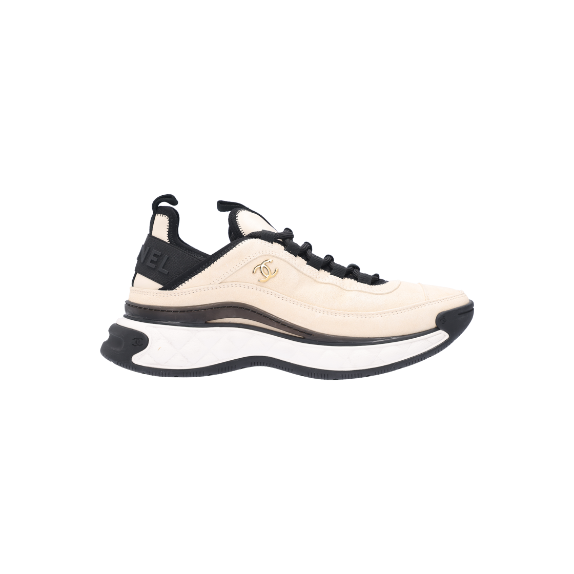 샤넬 G45331 믹스드 파이버 스니커즈 스웨이드 라이트 베이지 블랙 골드 36.5