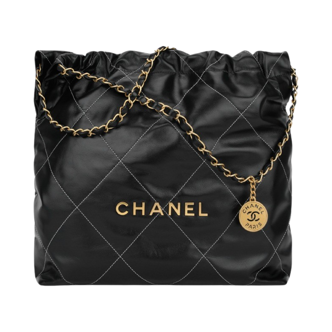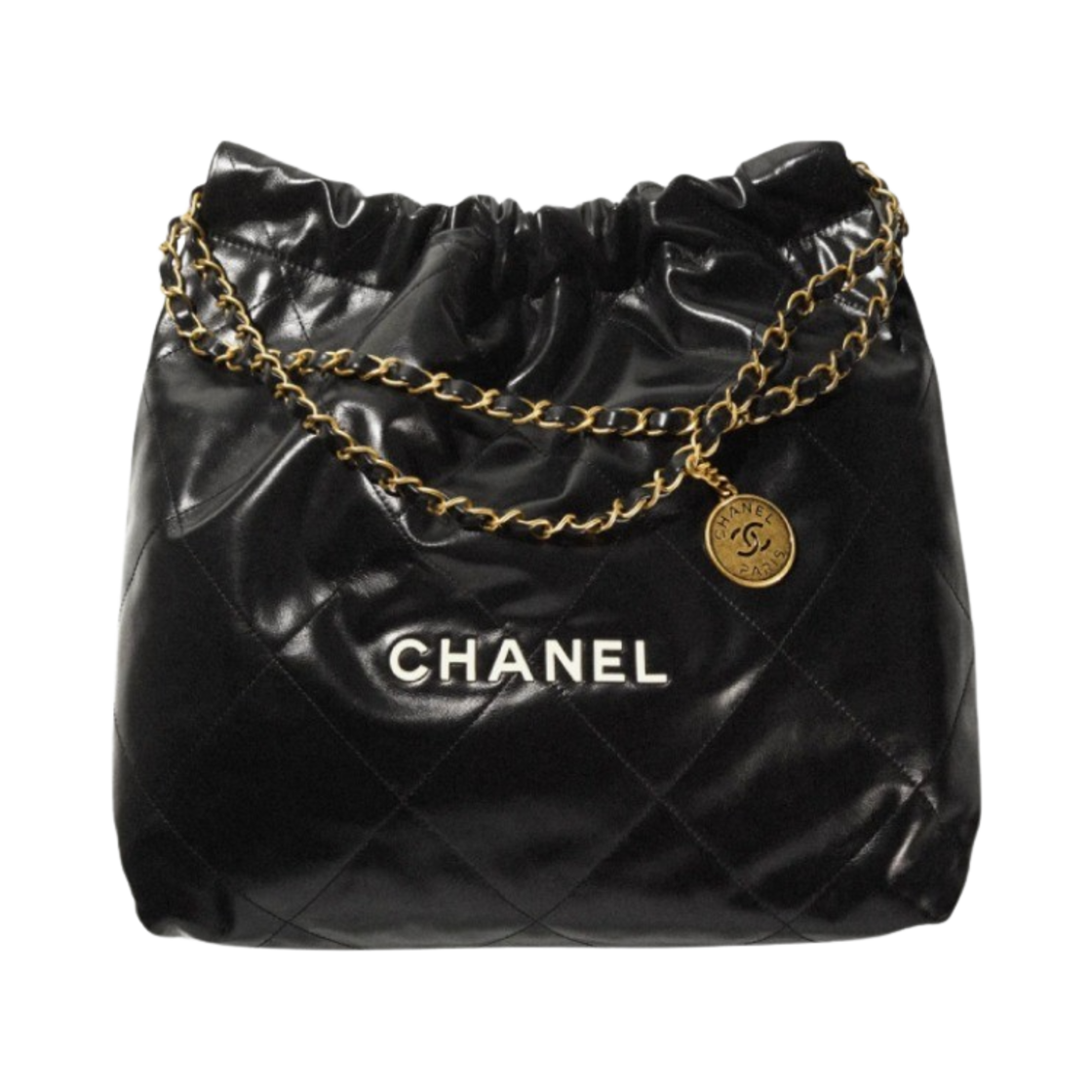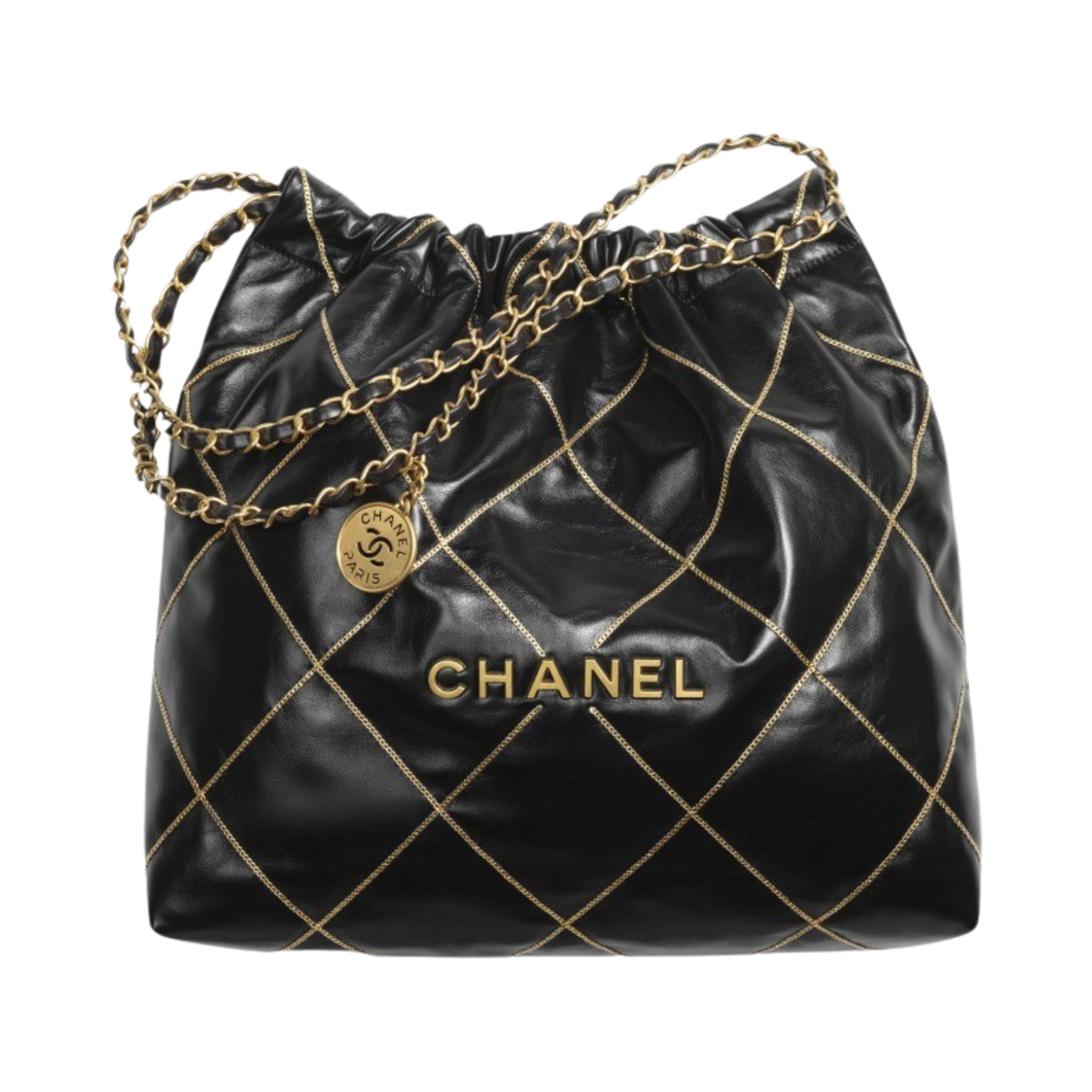 샤넬 22 미디움 핸드백 샤이니 카프스킨 & 골드 메탈 블랙