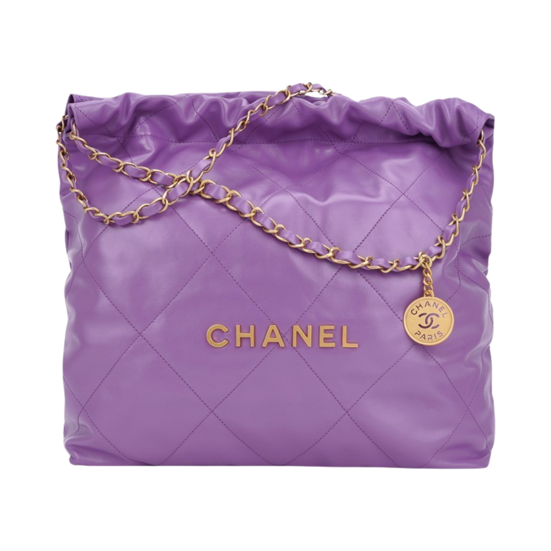 샤넬 22 미디움 핸드백 샤이니 카프스킨 & 골드 메탈 퍼플