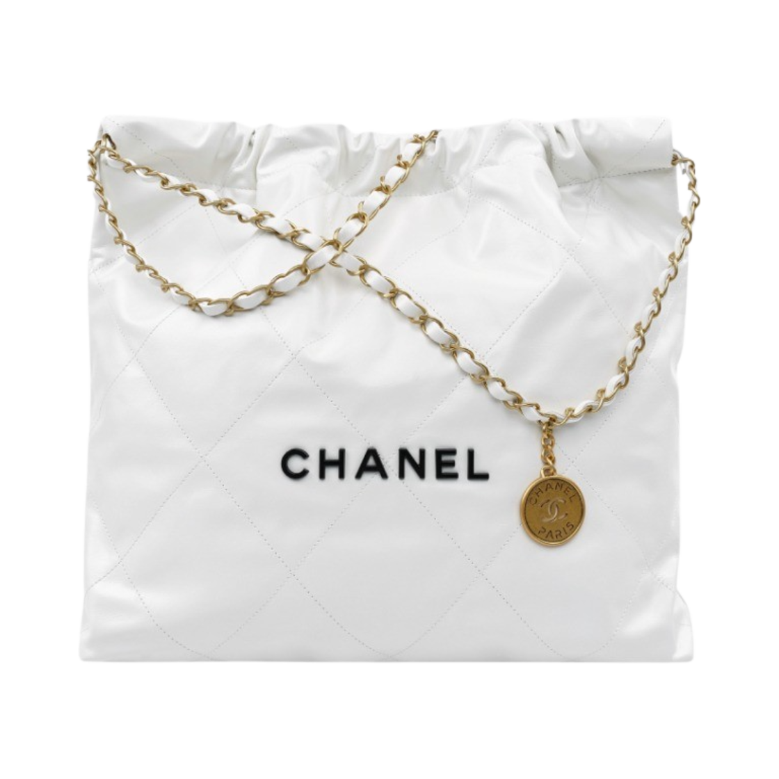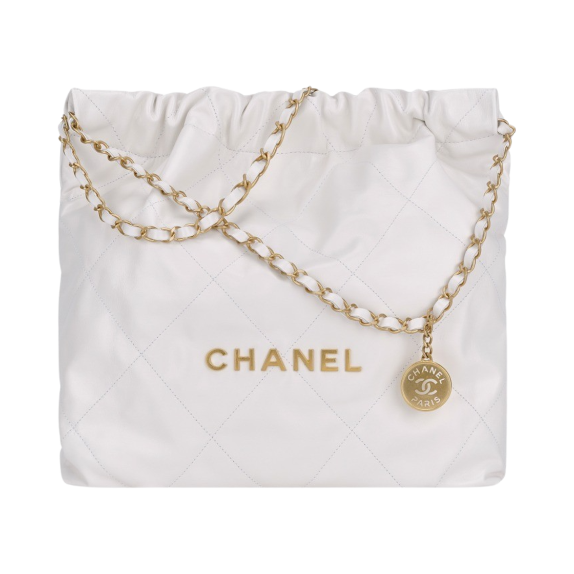 샤넬 22 미디움 핸드백 샤이니 카프스킨 & 골드 메탈 화이트
