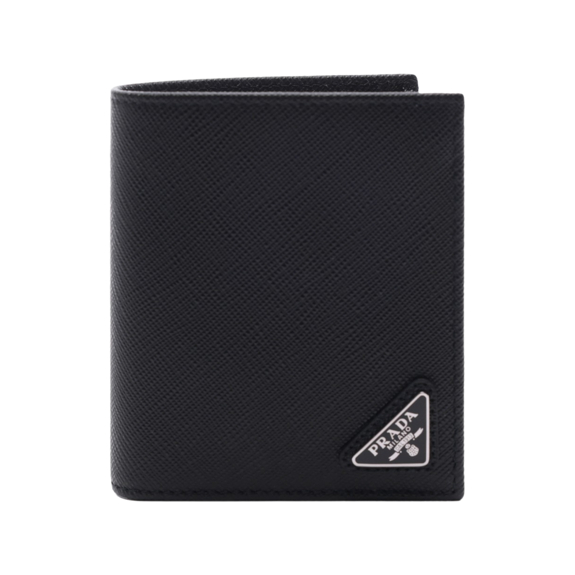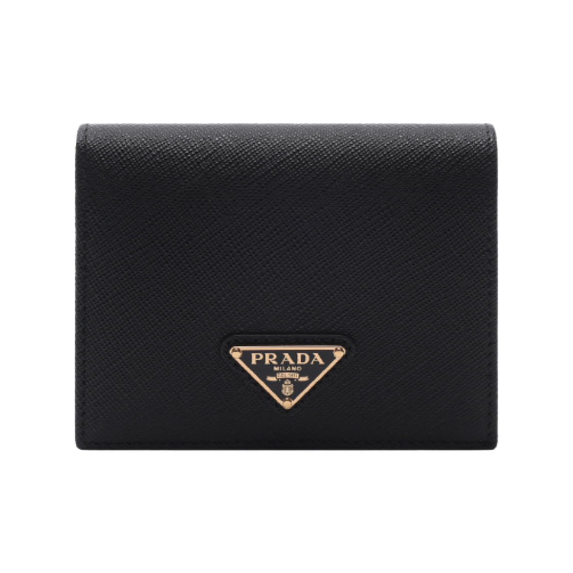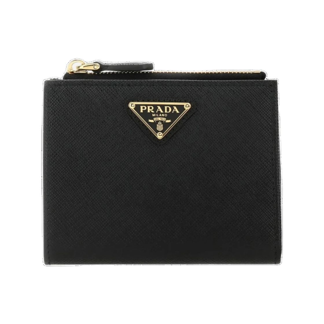 [20% 쿠폰] 프라다 사피아노 레더 트라이앵글 로고 반지갑 블랙 골드