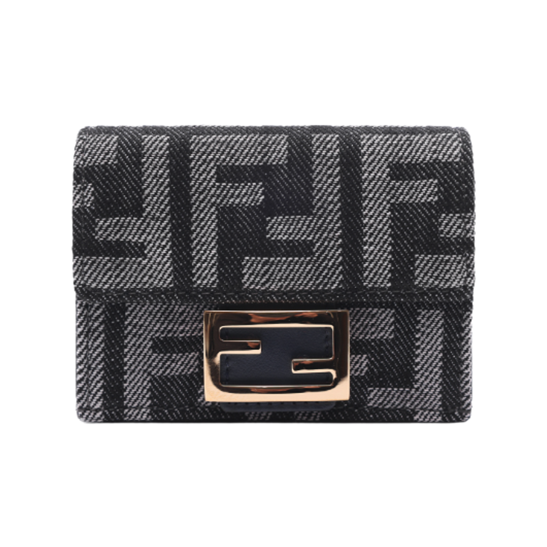 [20% 쿠폰] 펜디 바게트 마이크로 FF 자카드 트라이폴드 월렛 다크 블루