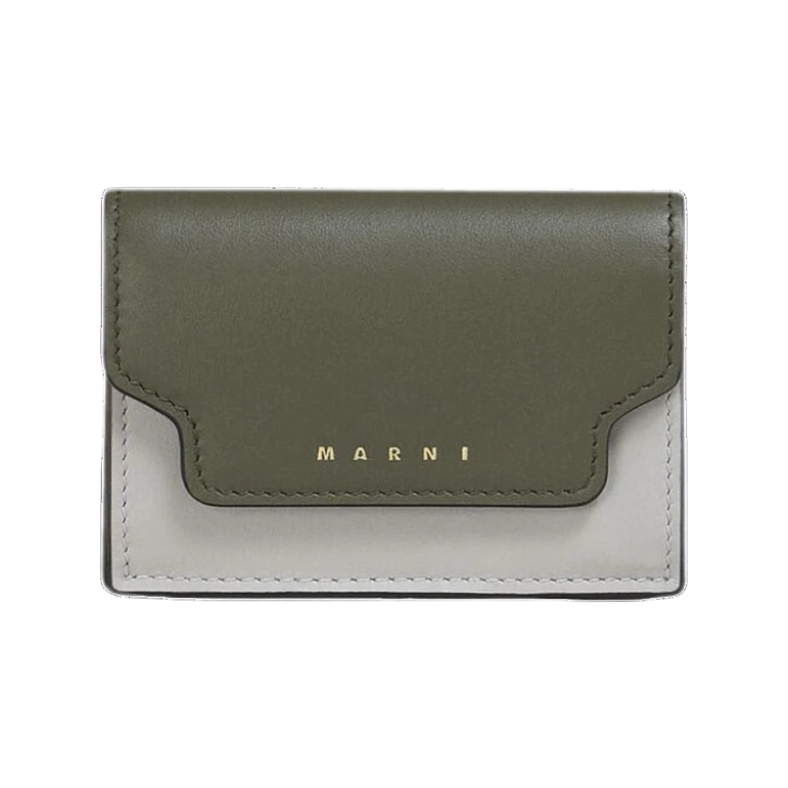 [20% 쿠폰] 마르니 레더 트라이폴드 지갑 모스스톤 펠리칸 골드 브라운