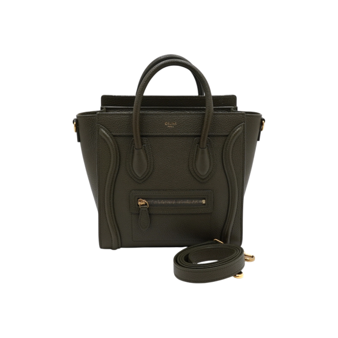셀린느 189243DRU 다크올리브 드럼 카프스킨 러기지 나노 토트백 겸 숄더백aa56754