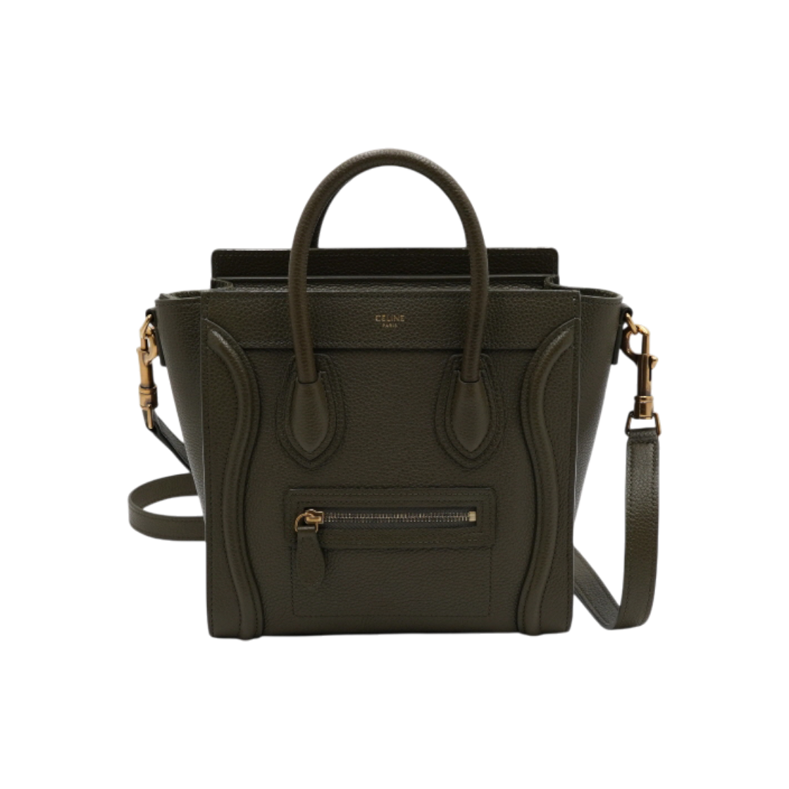 셀린느 189243DRU 다크올리브 드럼 카프스킨 러기지 나노 토트백 겸 숄더백aa56754