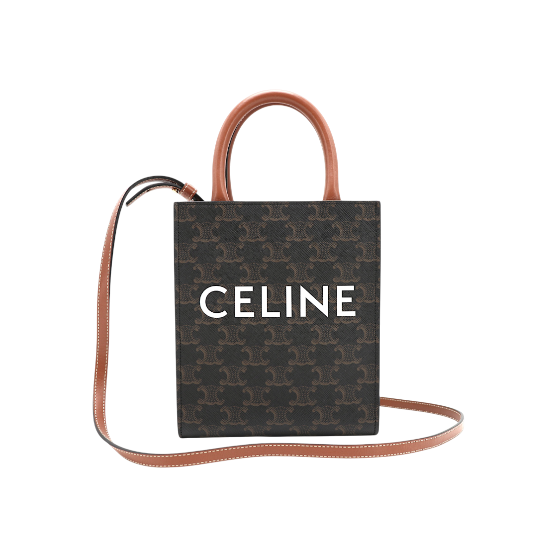 셀린느 트리오페 캔버스 탄 카프스킨 카바스 스몰 버티컬 2WAY