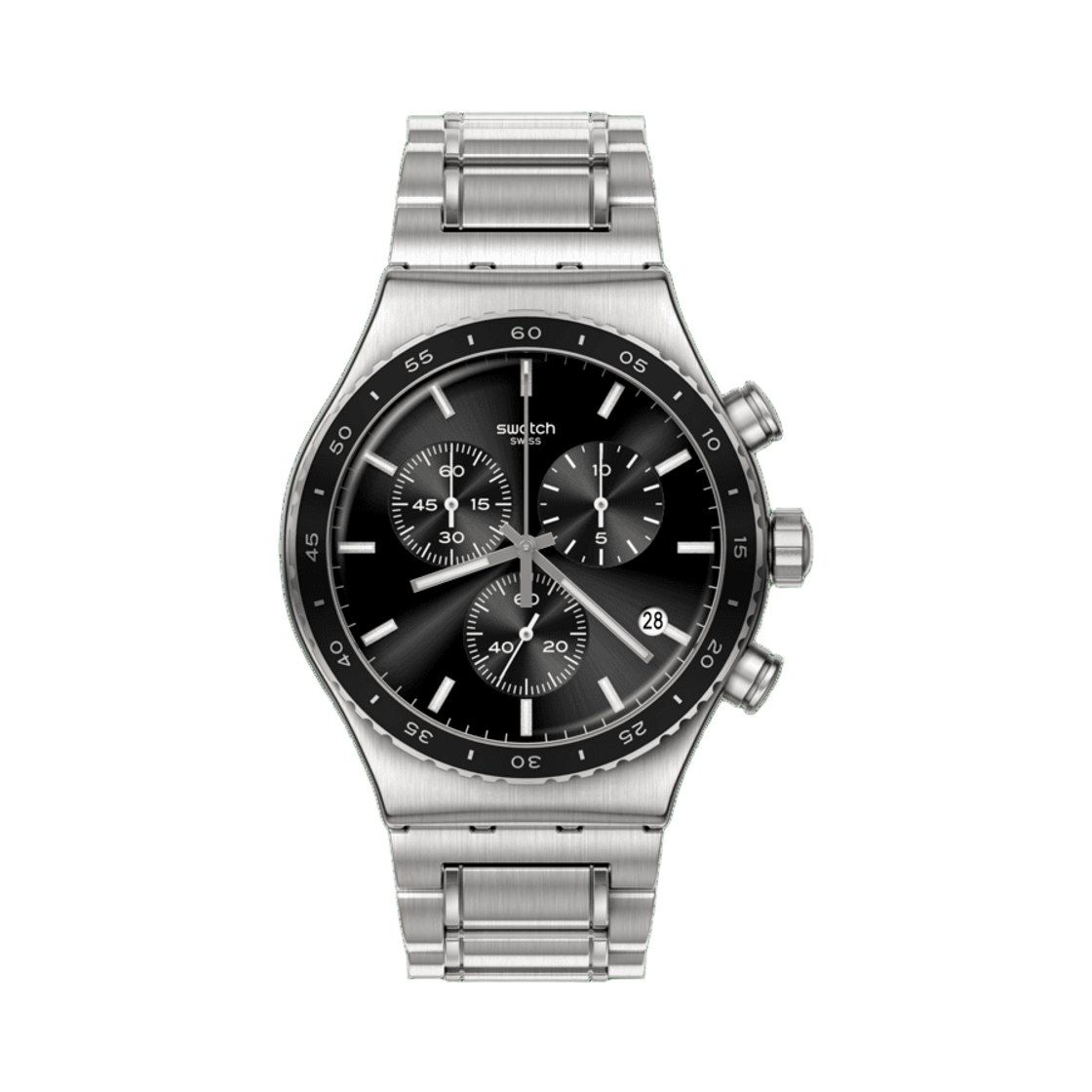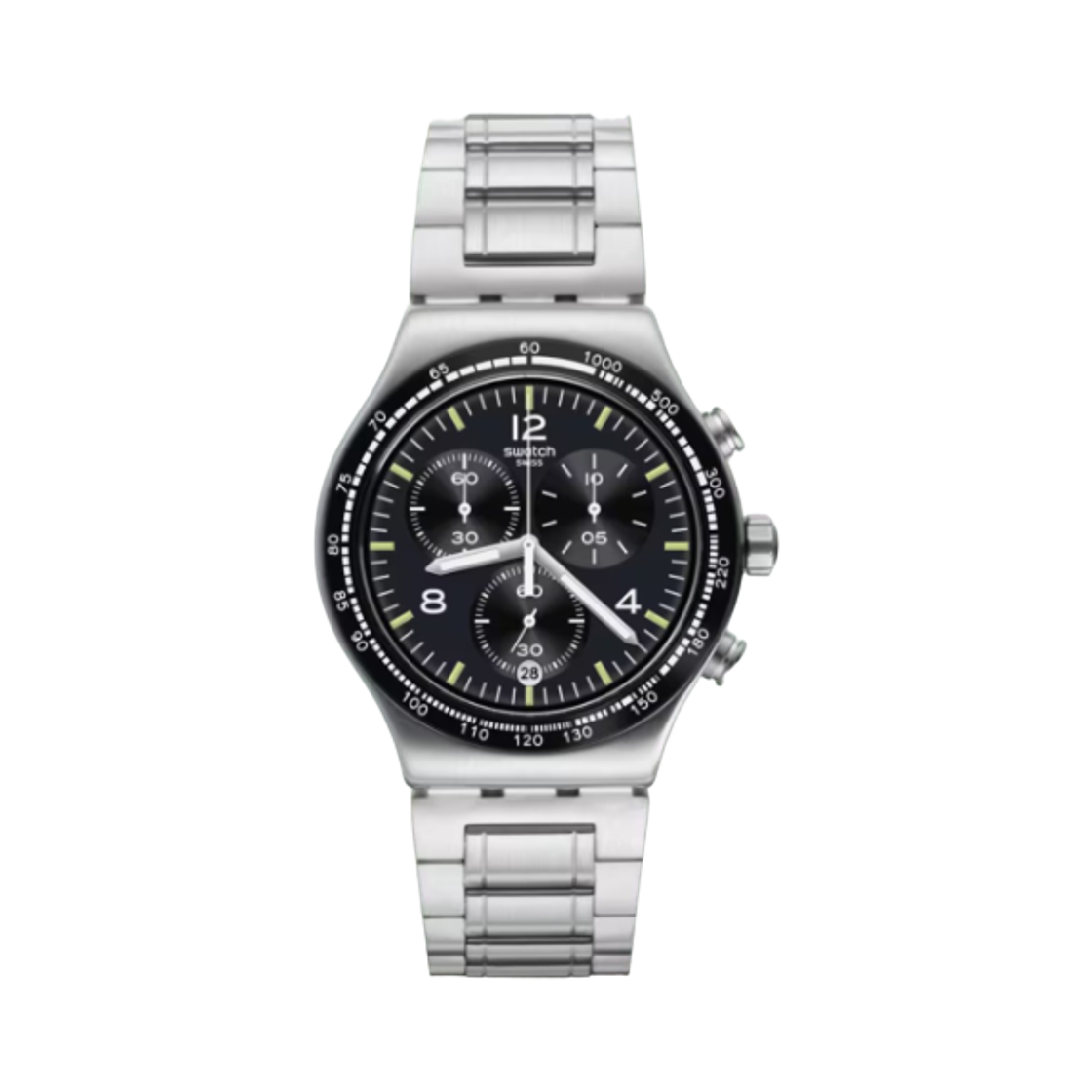 스와치 아이러니 앳 나이트 43mm 쿼츠 실버 블랙