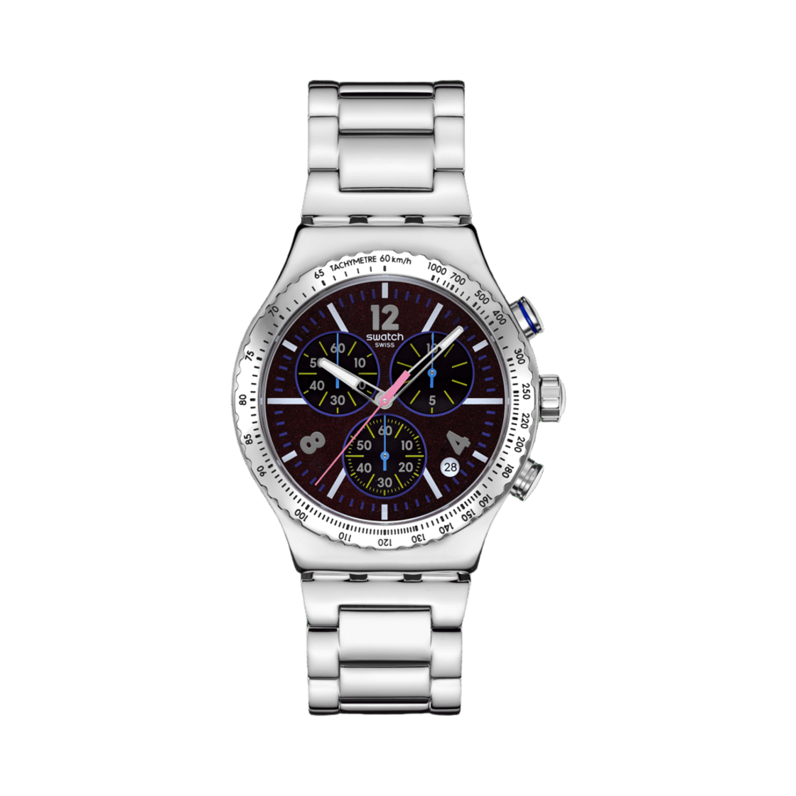 스와치 퍼플 글로우 43mm 쿼츠 실버 블랙