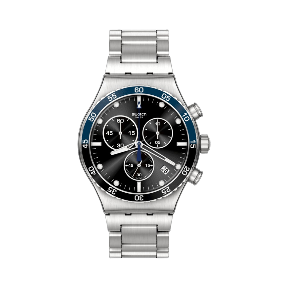 스와치 다크 블루 아이러니 43mm 쿼츠 실버 블랙