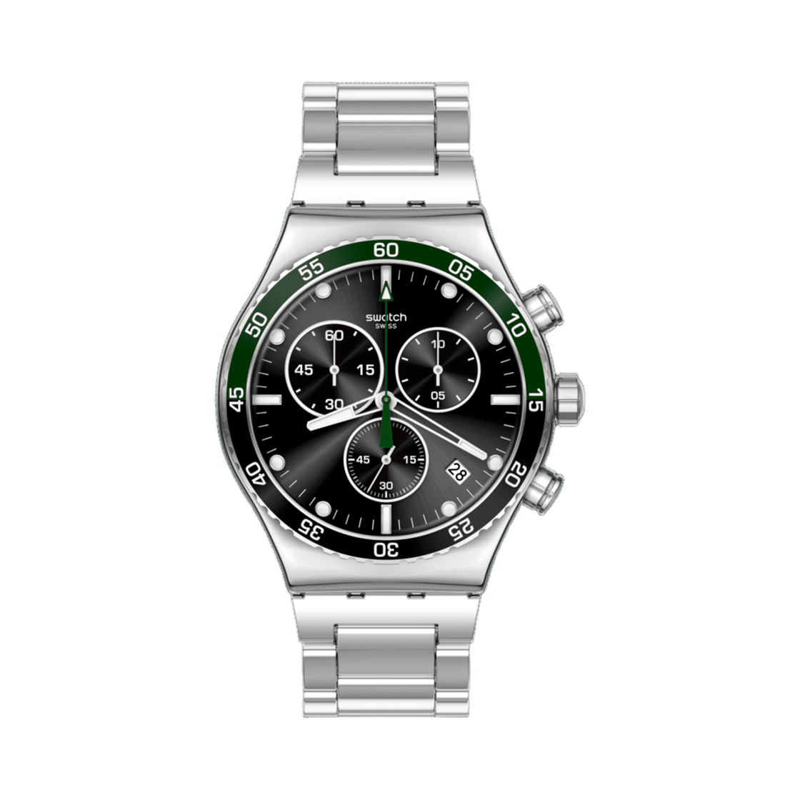 스와치 다크 그린 아이러니 43mm 쿼츠 실버 블랙
