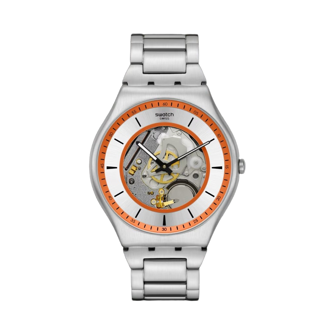 스와치 빅 볼드 앰버 신 47mm 쿼츠 실버 오렌지