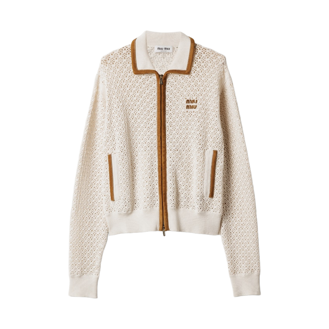 (W) 미우 미우 코튼 앤 스웨이드 가디건 내츄럴