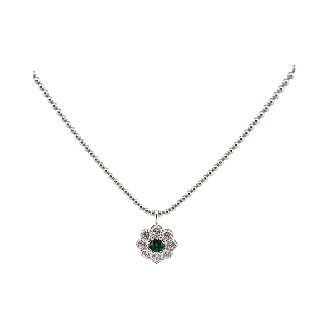 스쿠도 블로썸 오브 스노우 플레이크 그린 스톤 넥크리스 [Back hook]