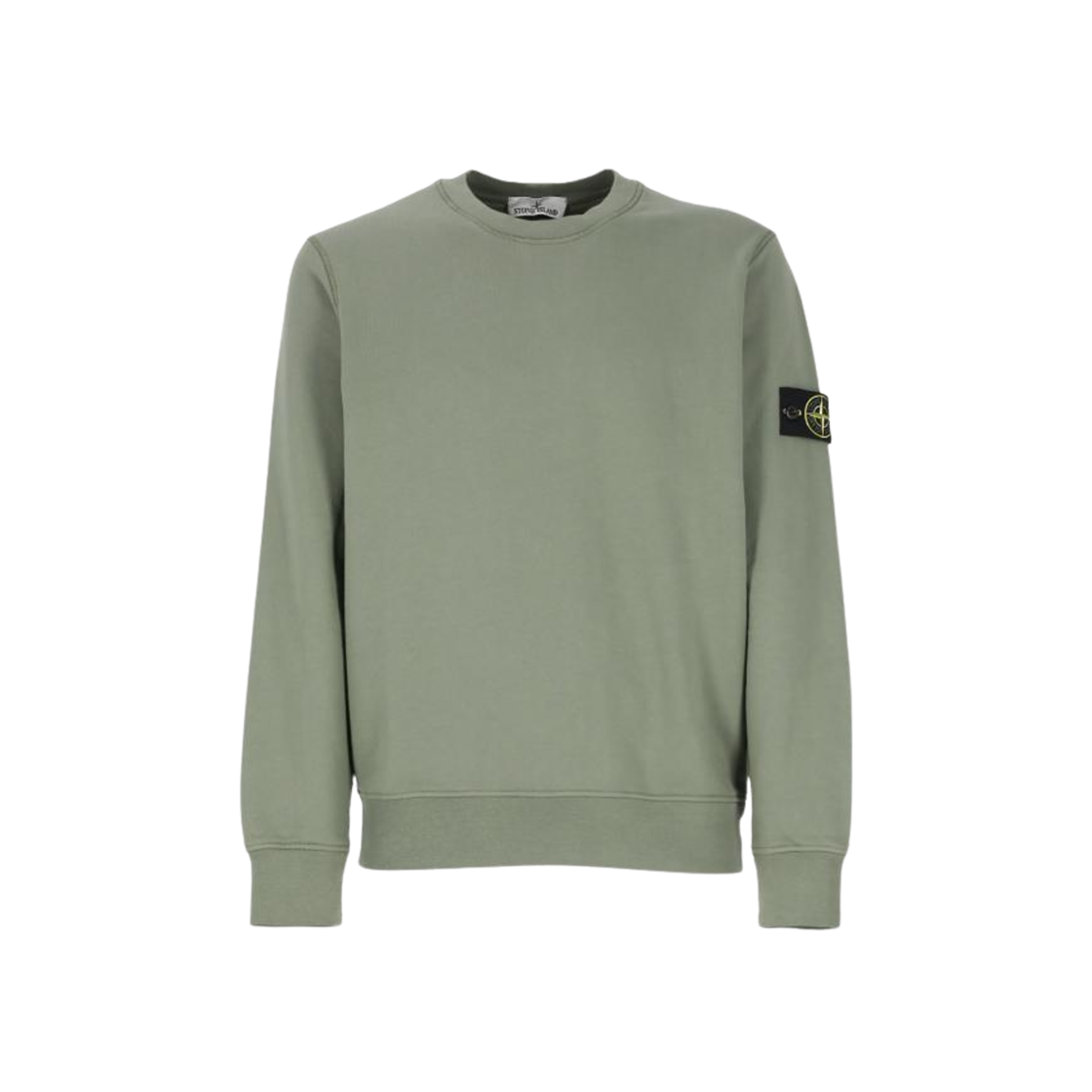 스톤 아일랜드 6100044 립드 디테일 오가닉 코튼 플리스 크루넥 스웨트셔츠 밀리터리 그린 - 25SS
