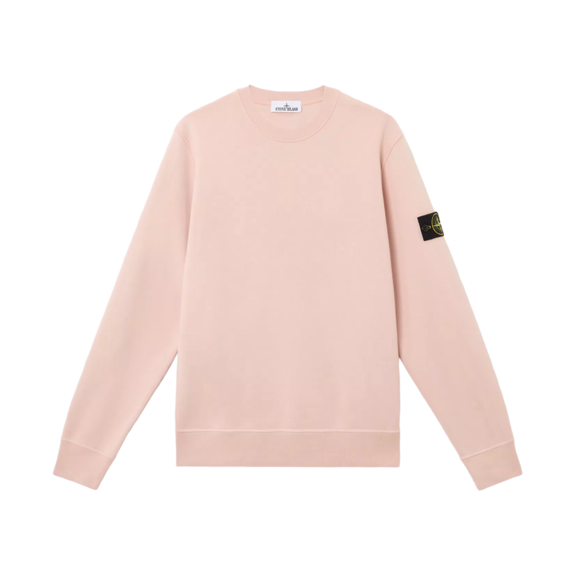 스톤 아일랜드 6100044 오가닉 코튼 플리스 크루넥 스웨트셔츠 립드 디테일 앤티크 로즈 - 25SS