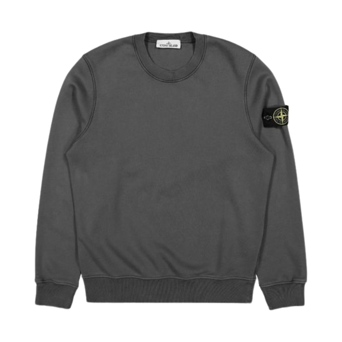 스톤 아일랜드 6100060 오가닉 코튼 플리스 레귤러 핏 크루넥 스웨트셔츠 엘라스티케이티드 커프스 차콜 그레이 - 25FW
