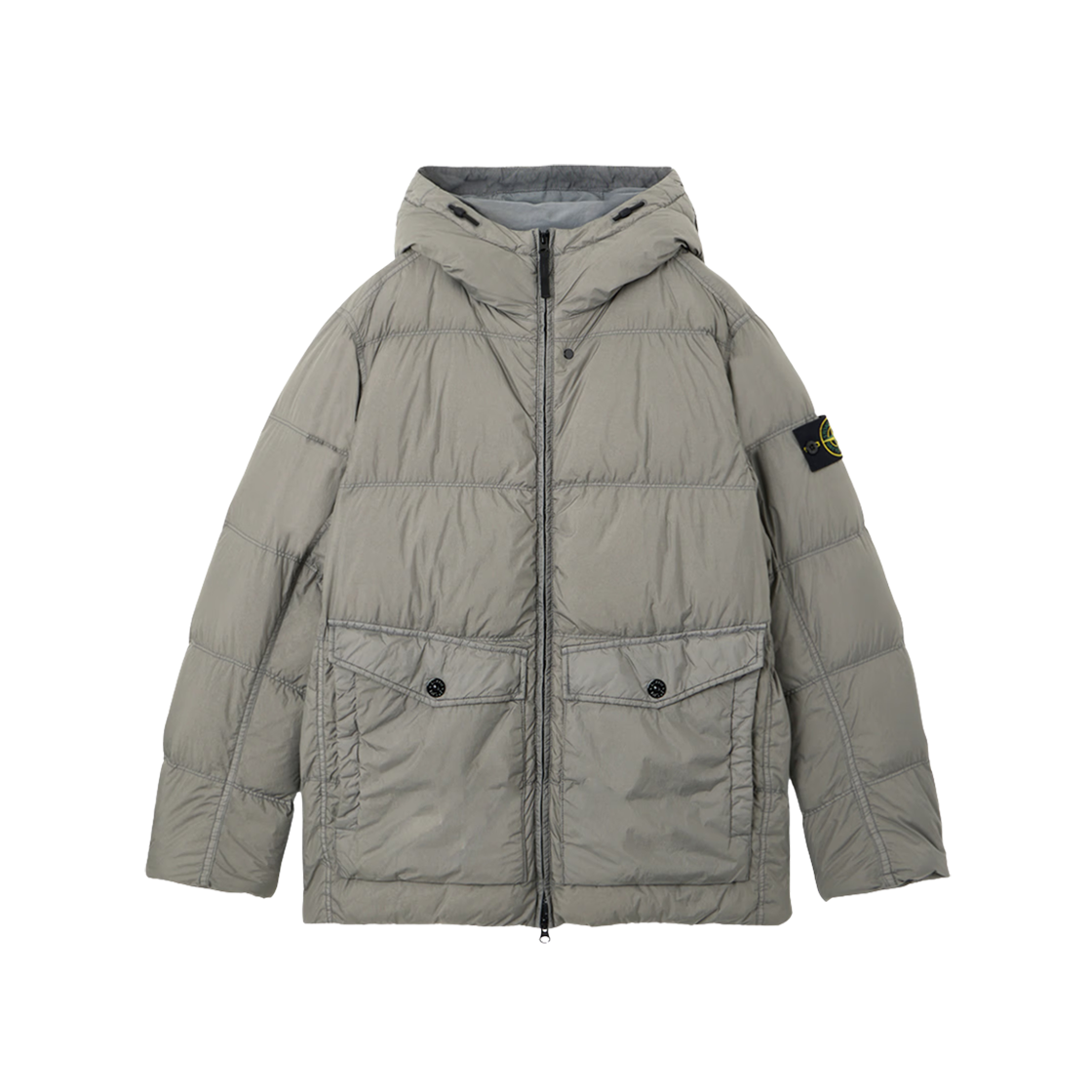 스톤 아일랜드 4100011 크링클 랩스 NY 리사이클 나일론 윈드 레지스턴스 후드 다운 자켓 리드 그레이 - 25FW