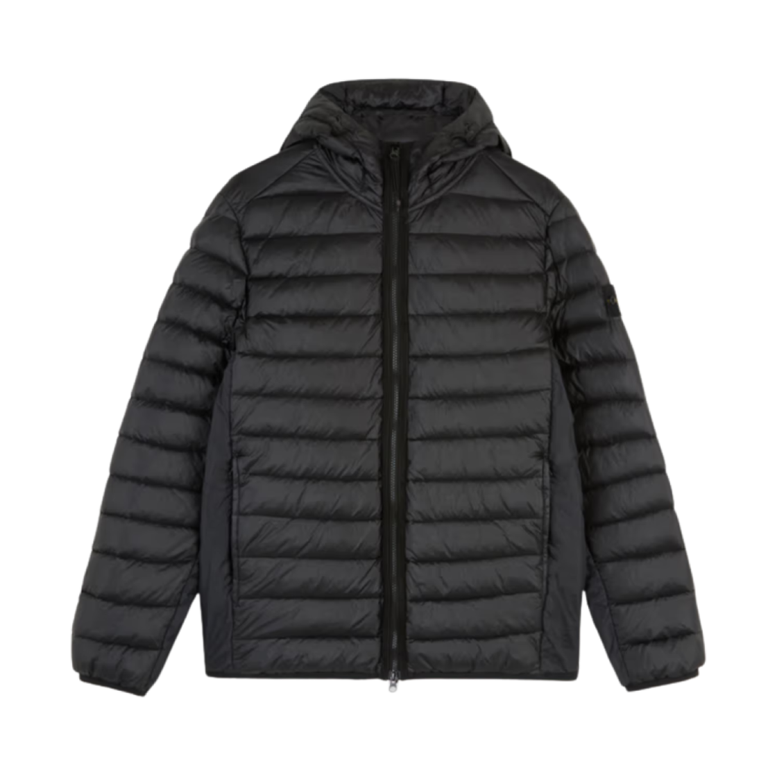 스톤 아일랜드 4100047 마이크로 트윌 패딩 후드 자켓 안티 드롭 앤 스냅 포켓 블랙 - 25FW