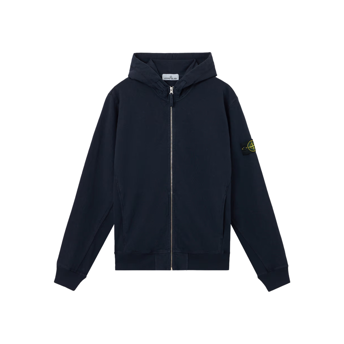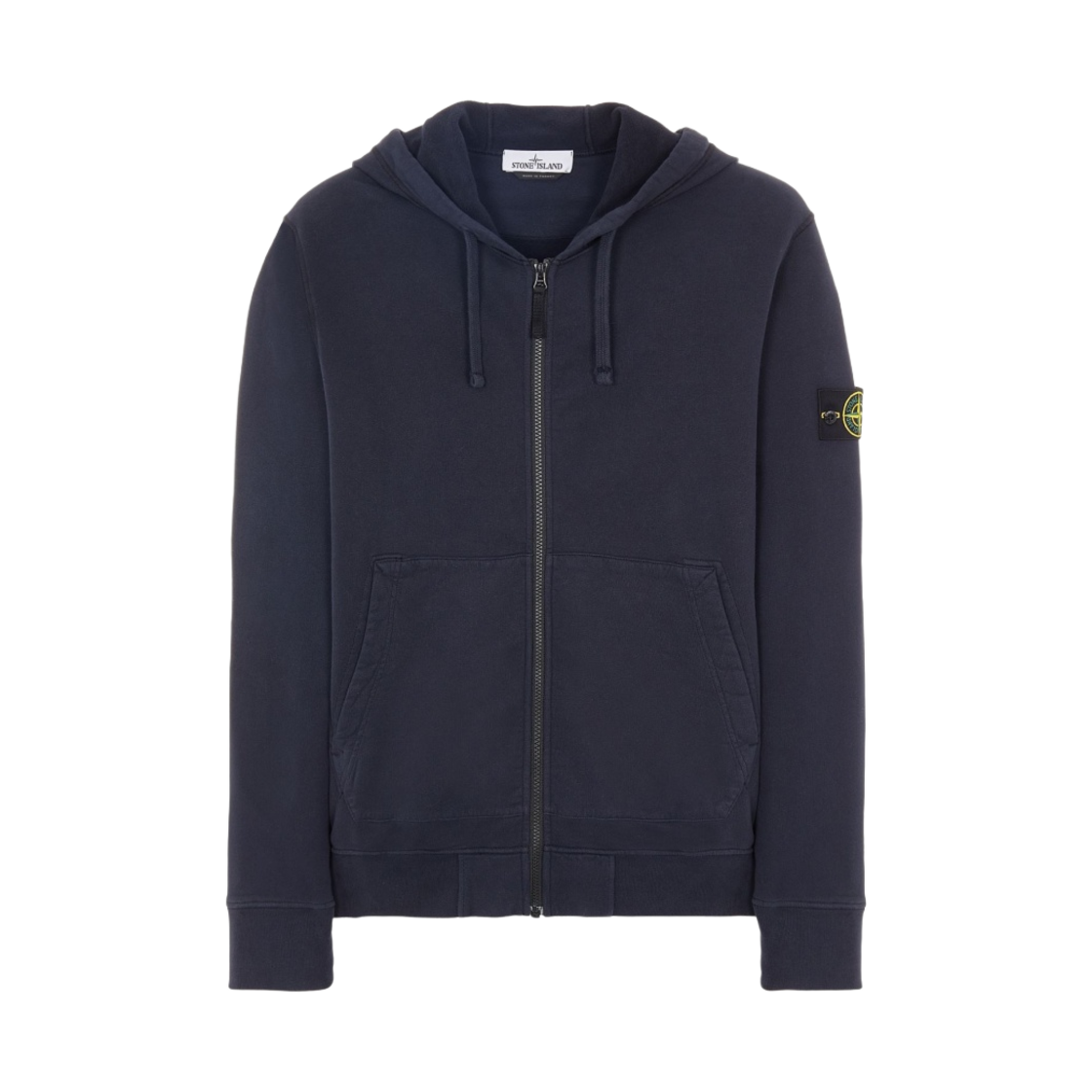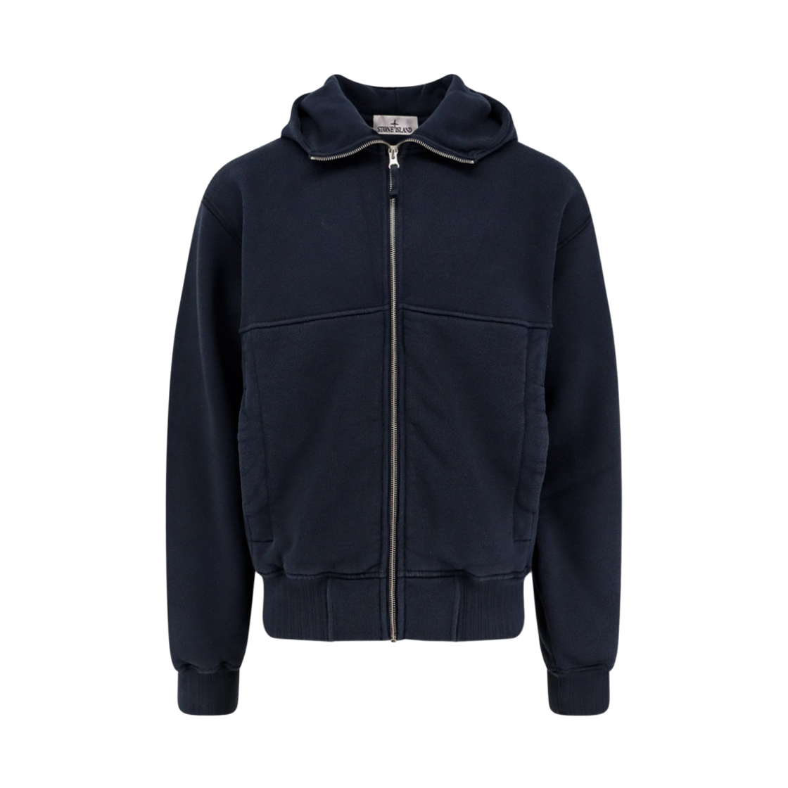 스톤 아일랜드 61620 브러쉬드 코튼 플리스 가먼트 다이드 풀 지퍼 후드 스웨트셔츠 네이비 블루 - 23FW