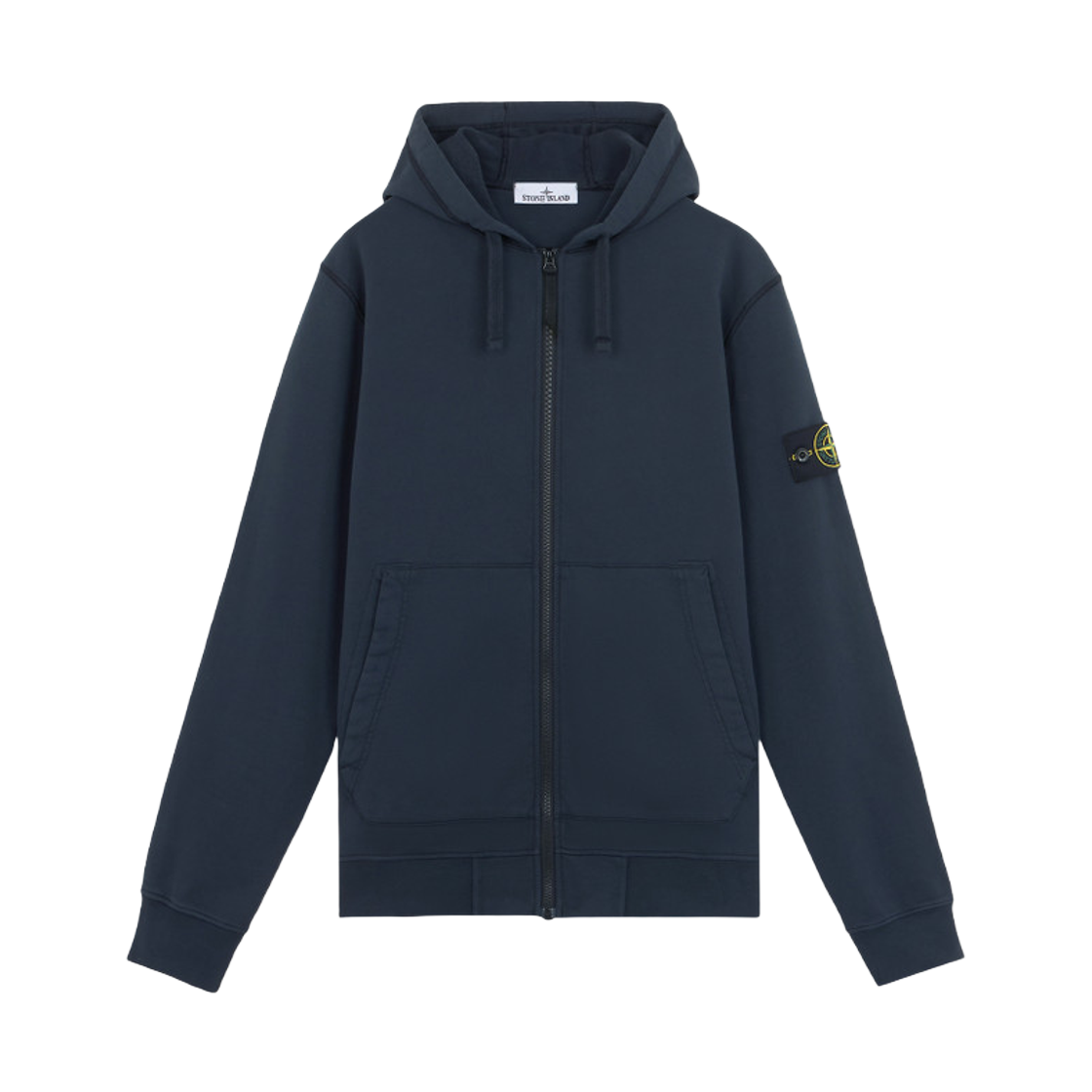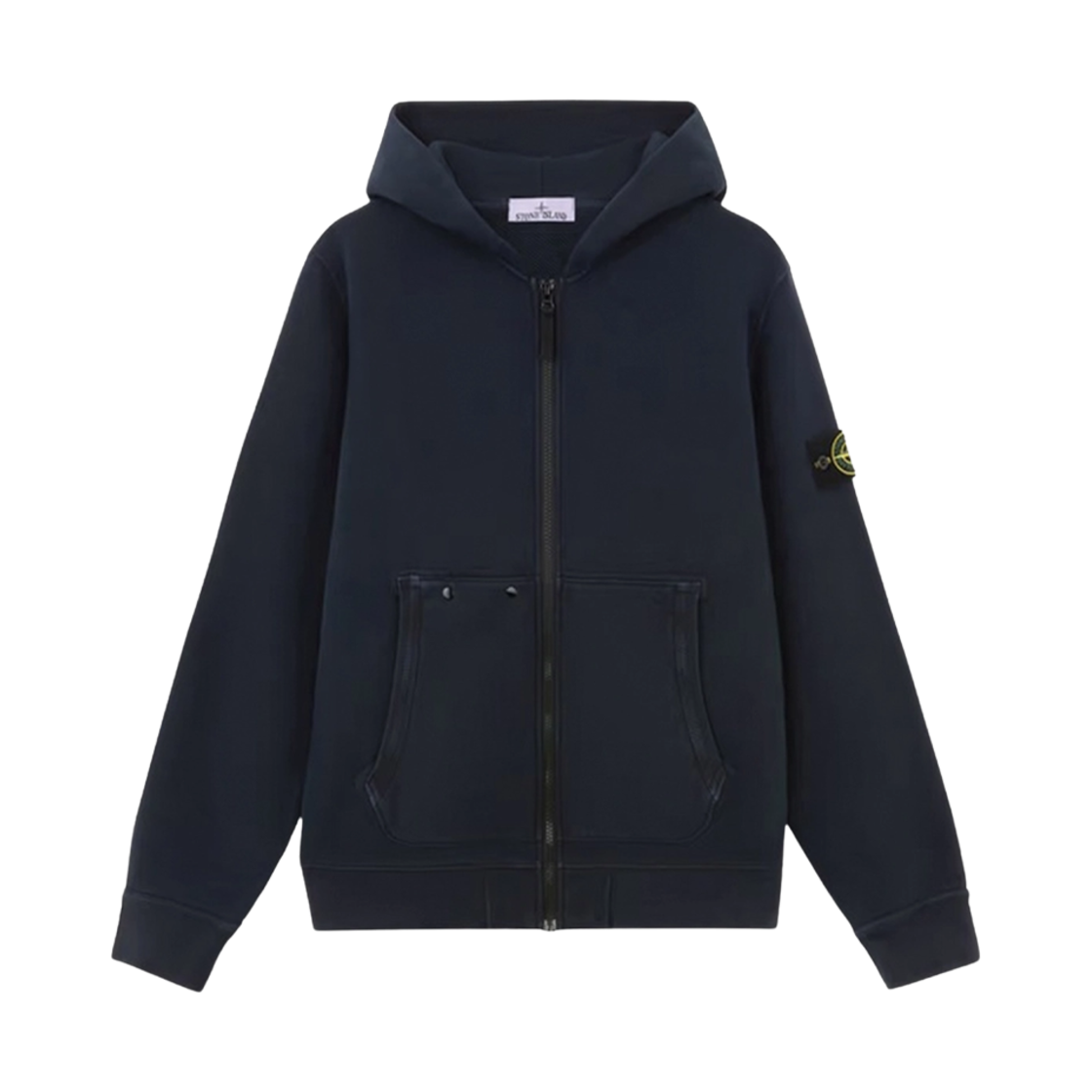 스톤 아일랜드 6100009 브러쉬드 오가닉 코튼 플리스 레귤러 핏 집업 후드 스웨트셔츠 네이비 블루 - 25FW