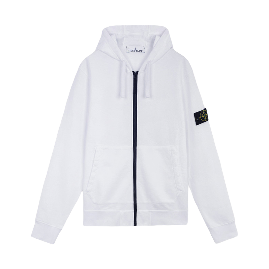 (키즈) 스톤 아일랜드 60720 가먼트 다이드 코튼 플리스 후드 풀 집업 스웨트셔츠 화이트 - 24FW