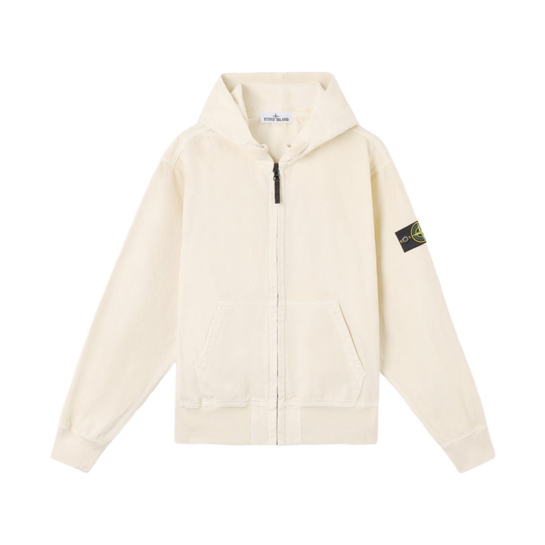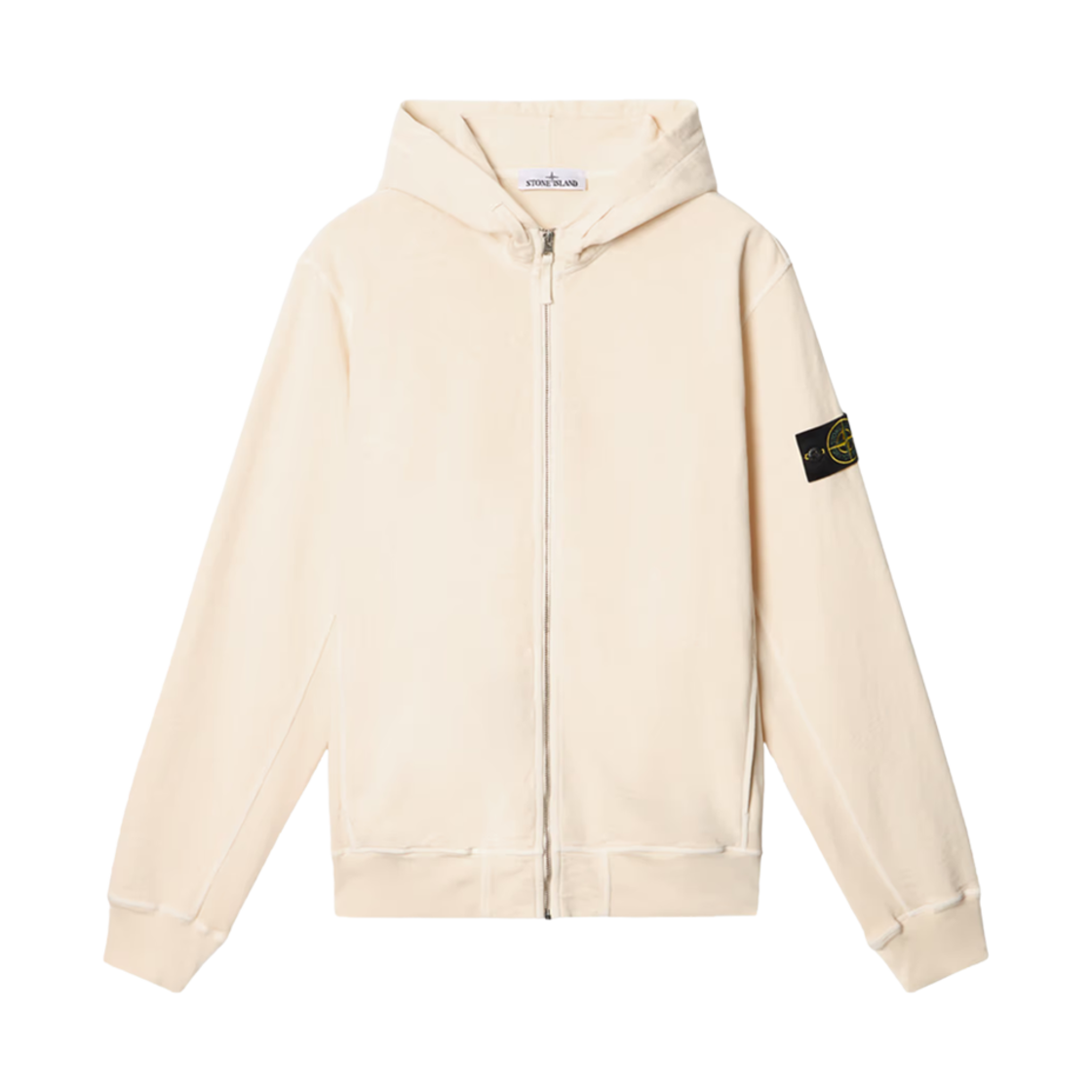 스톤 아일랜드 6100021 말파일 플리스 올드 이펙트 풀 집 후드 스웨트셔츠 아이보리 - 25SS