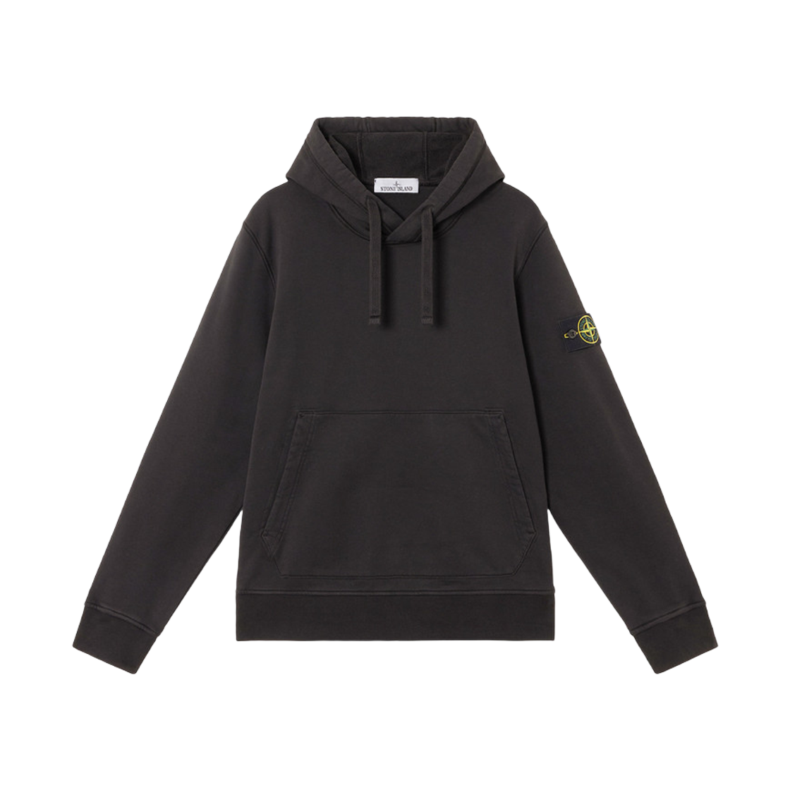 스톤 아일랜드 64251 가먼트 다이드 코튼 플리스 풀 지퍼 후드 스웨트셔츠 블랙 - 24SS