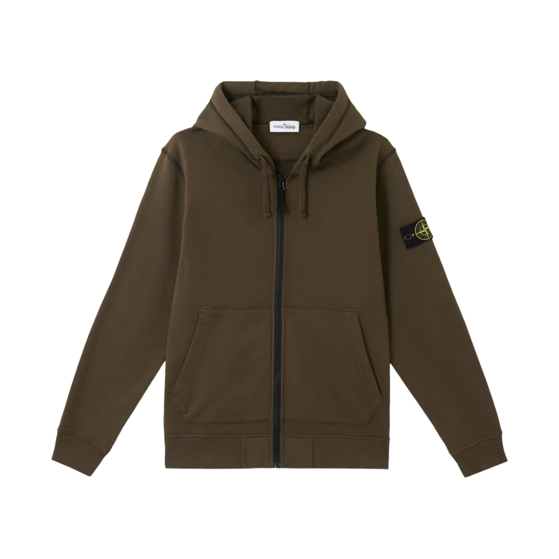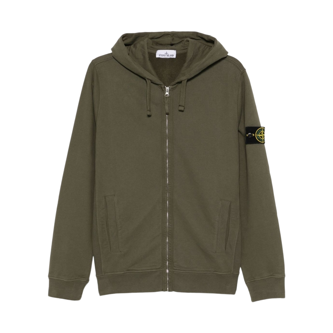 스톤 아일랜드 63520 브러쉬드 오가닉 코튼 플리스 후드 풀 지퍼 스웨트셔츠 머스크 그린 - 24FW