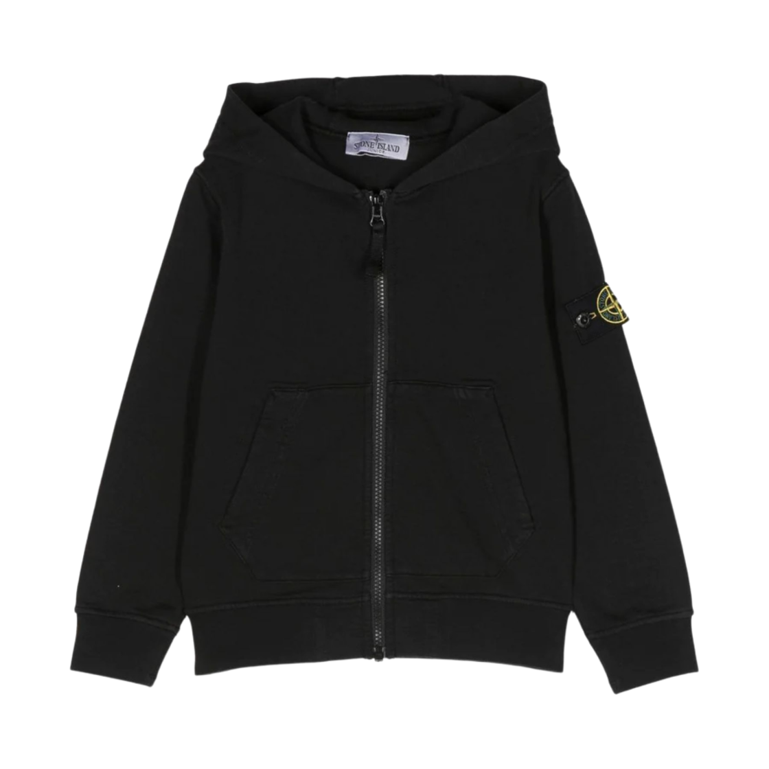 (키즈) 스톤 아일랜드 6100010 로고 패치 풀 집업 후드 블랙 - 25SS