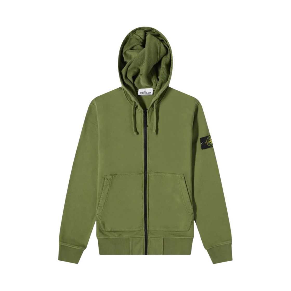 스톤 아일랜드 64251 코튼 플리스 후드 집업 올리브 그린 - 22SS