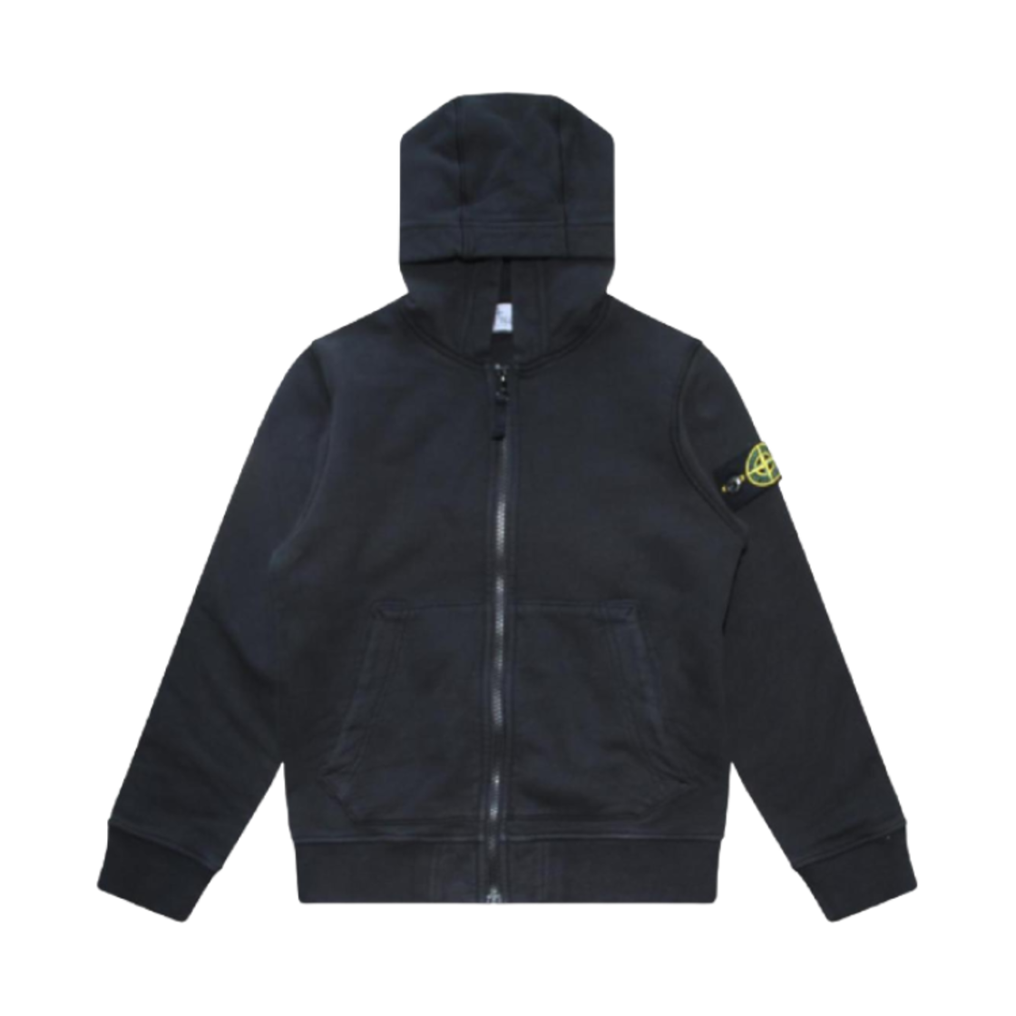 (키즈) 스톤 아일랜드 60740 코튼 플리스 풀 집업 후드 스웨트셔츠 블랙 - 22SS