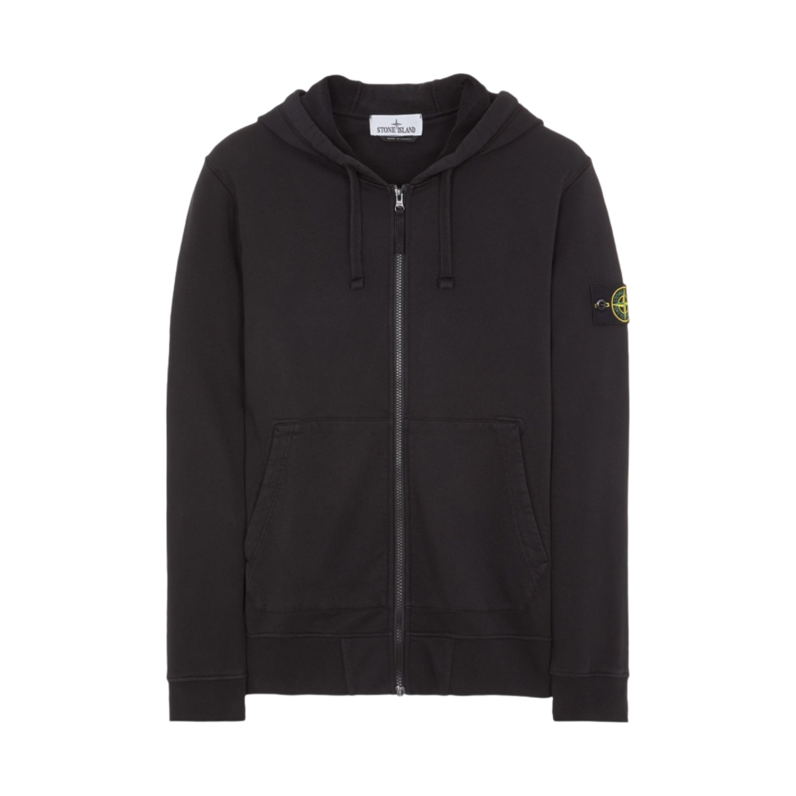 스톤 아일랜드 64251 가먼트 다이드 코튼 플리스 풀 집업 후드 스웨트셔츠 블랙 - 24FW