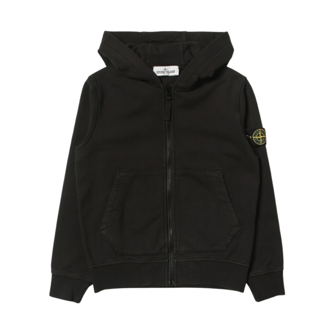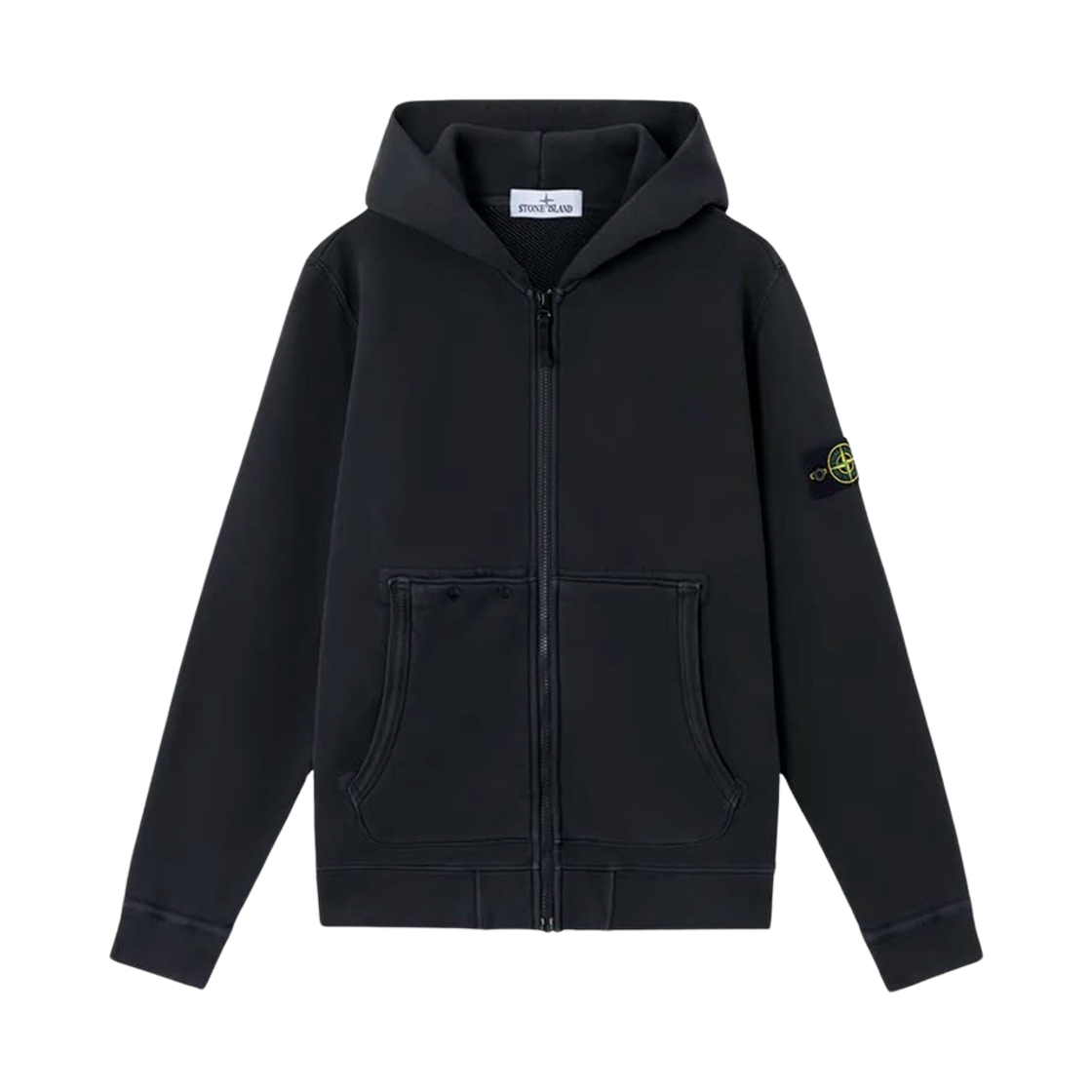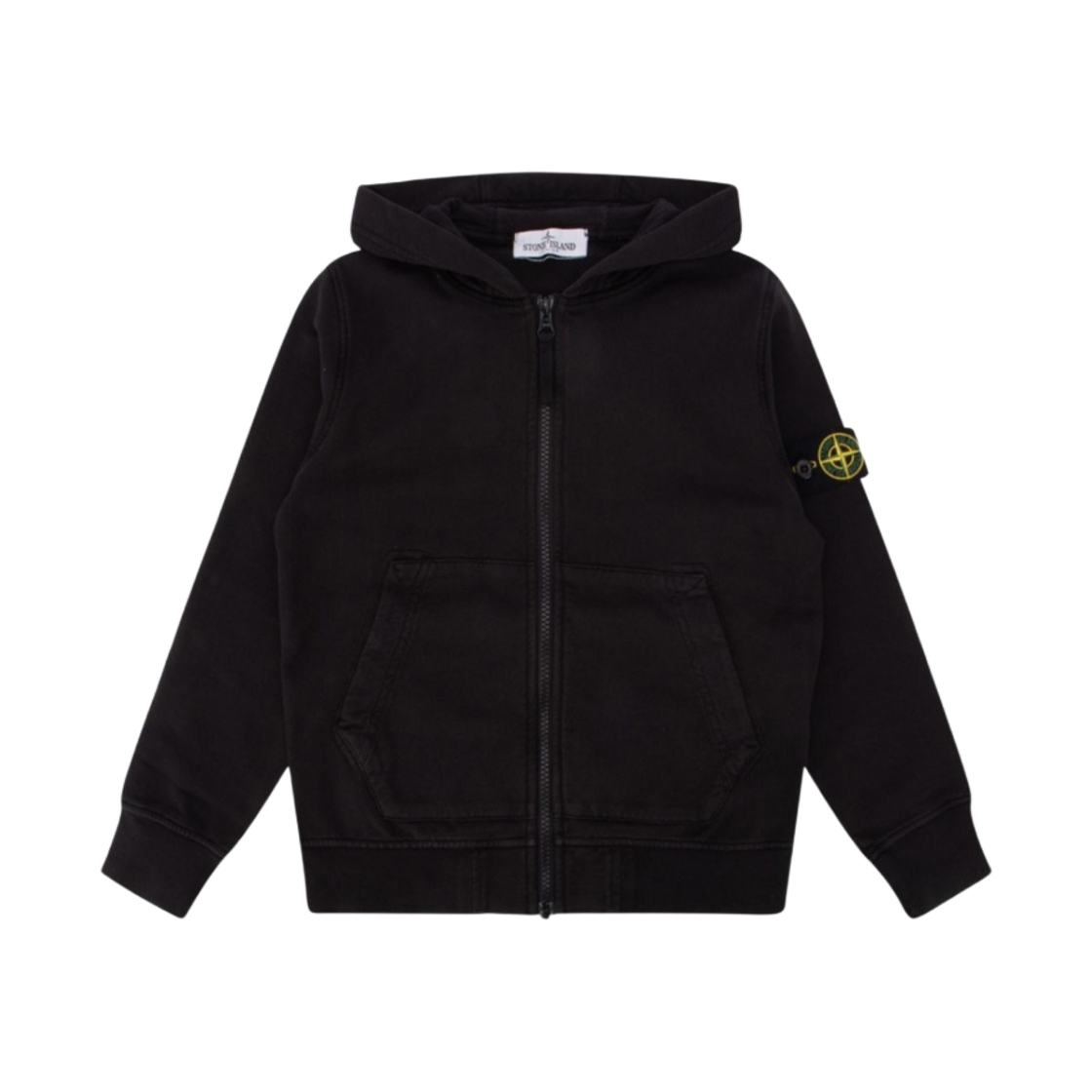 (키즈) 스톤 아일랜드 60720 가먼트 다이드 코튼 플리스 후드 풀 집업 스웨트셔츠 블랙 - 24FW